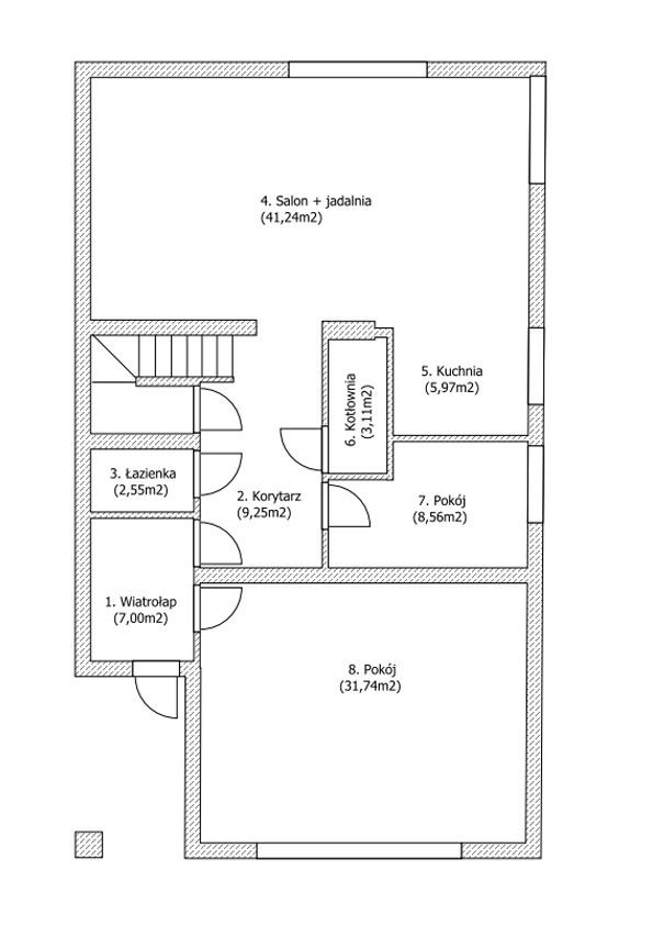 - Elastyczny układ pomieszczeń – możliwość wydzielenia dodatkowych pokoi.