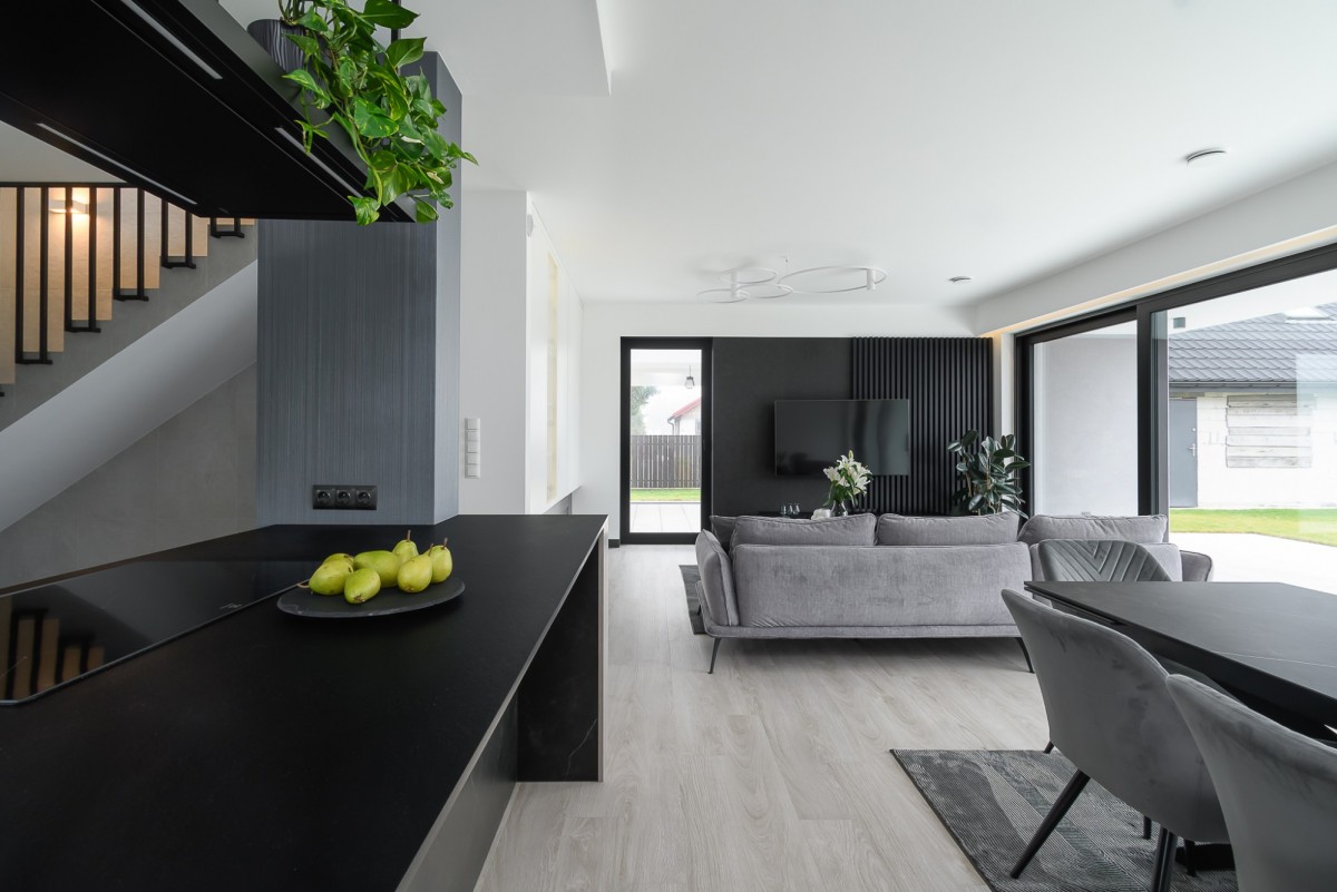 • wszystkie elementy blachy, rynien, stolarki - na specjalne zamówienie malowane w kolorze RAL 9005 “Jet Black - Czerń Gagatowa”