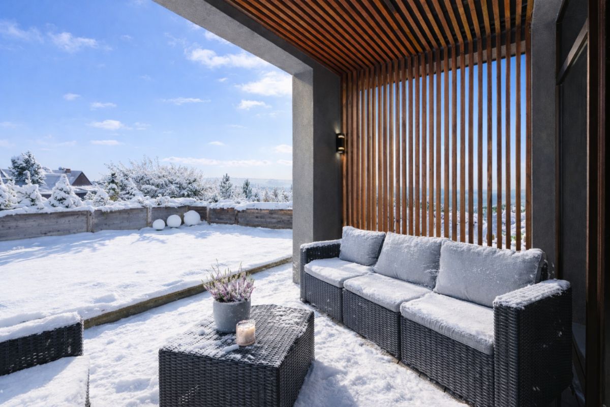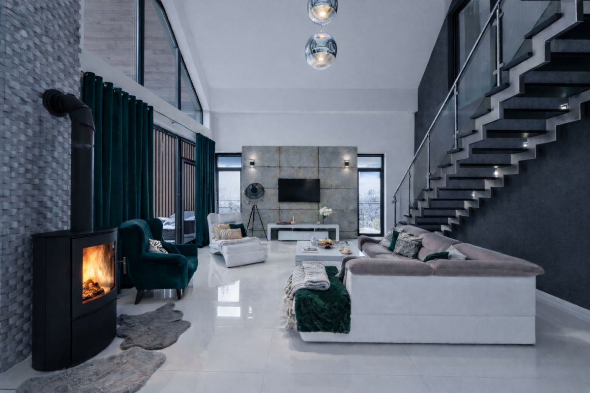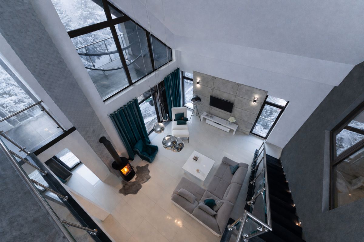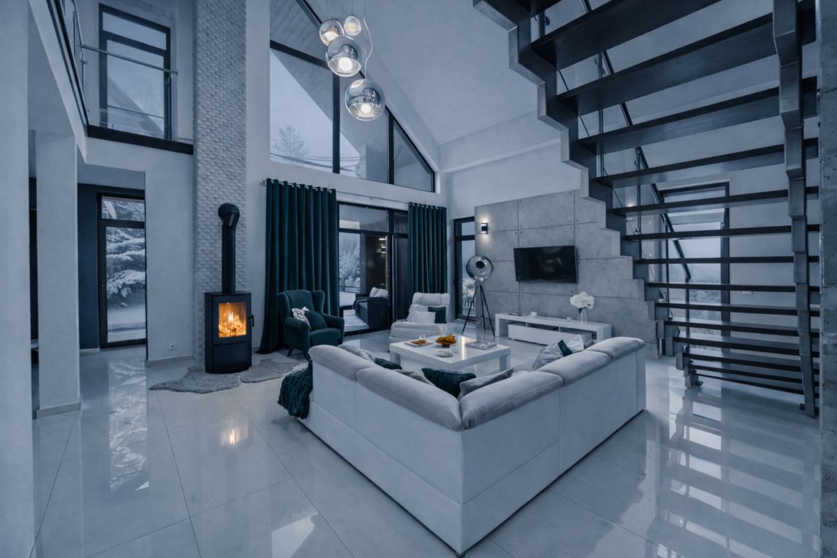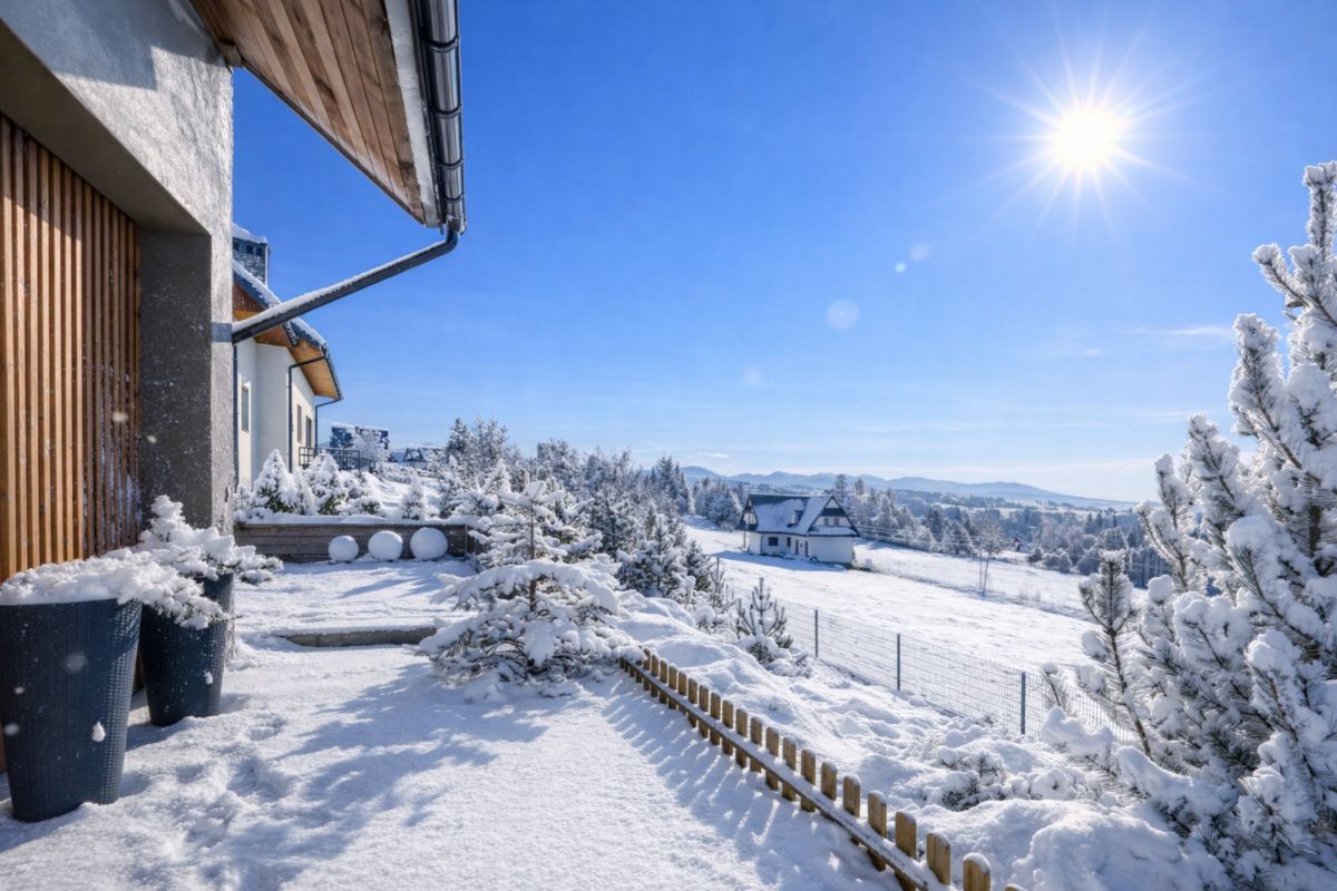 Wyobraź sobie zimowe poranki, gdy z tarasu lub salonu obserwujesz pokryte śniegiem szczyty Tatr, a jedynymi dźwiękami są cisza i natura. Wieczorem wnętrza wypełnia światło, a przestronny salon z kominkiem staje się naturalnym centrum domu idealnym miejscem na odpoczynek po dniu spędzonym na stoku, spacerze lub pracy zdalnej.