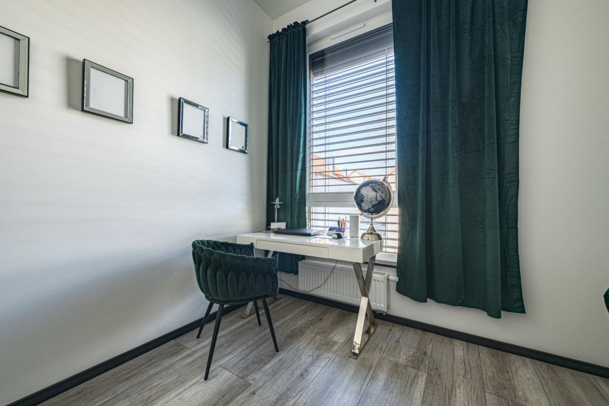 - Przemyślany, funkcjonalny układ pomieszczeń z przestrzenią do pracy biurowej z domu.
