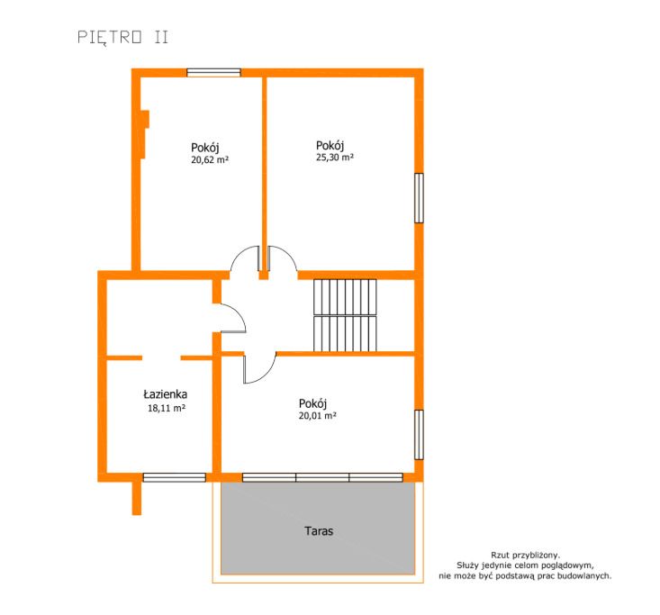 Na piętrze znajdziemy 3 sypialnie, łazienkę, oraz kolejny taras- nie ma tu miejsca na kompromisy, każde z tych pomieszczeń daje Ci przestrzeń i swobodę