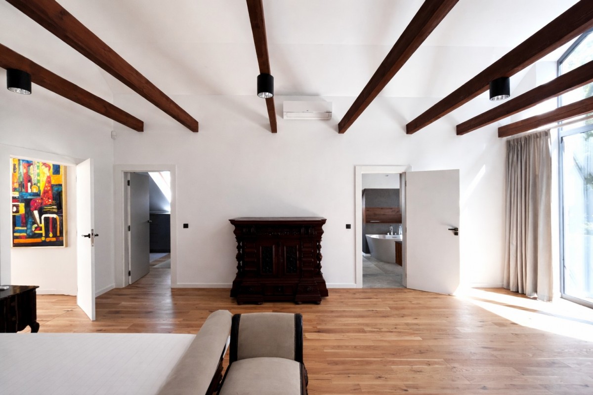 sypialnia master z prywatną łazienką (wanna i prysznic) oraz garderobą