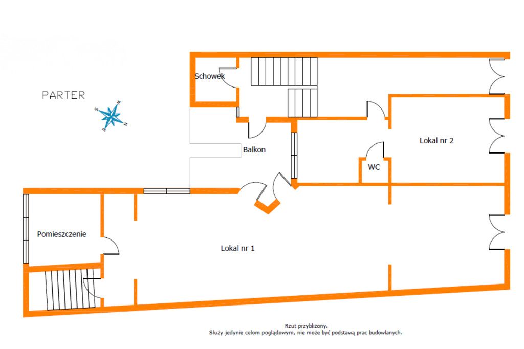 Rozkład pomieszczeń:- Parter: dwa lokale użytkowe, w tym jeden wynajmowany od lat (optyk), drugi z antresolą, idealny do zagospodarowania.