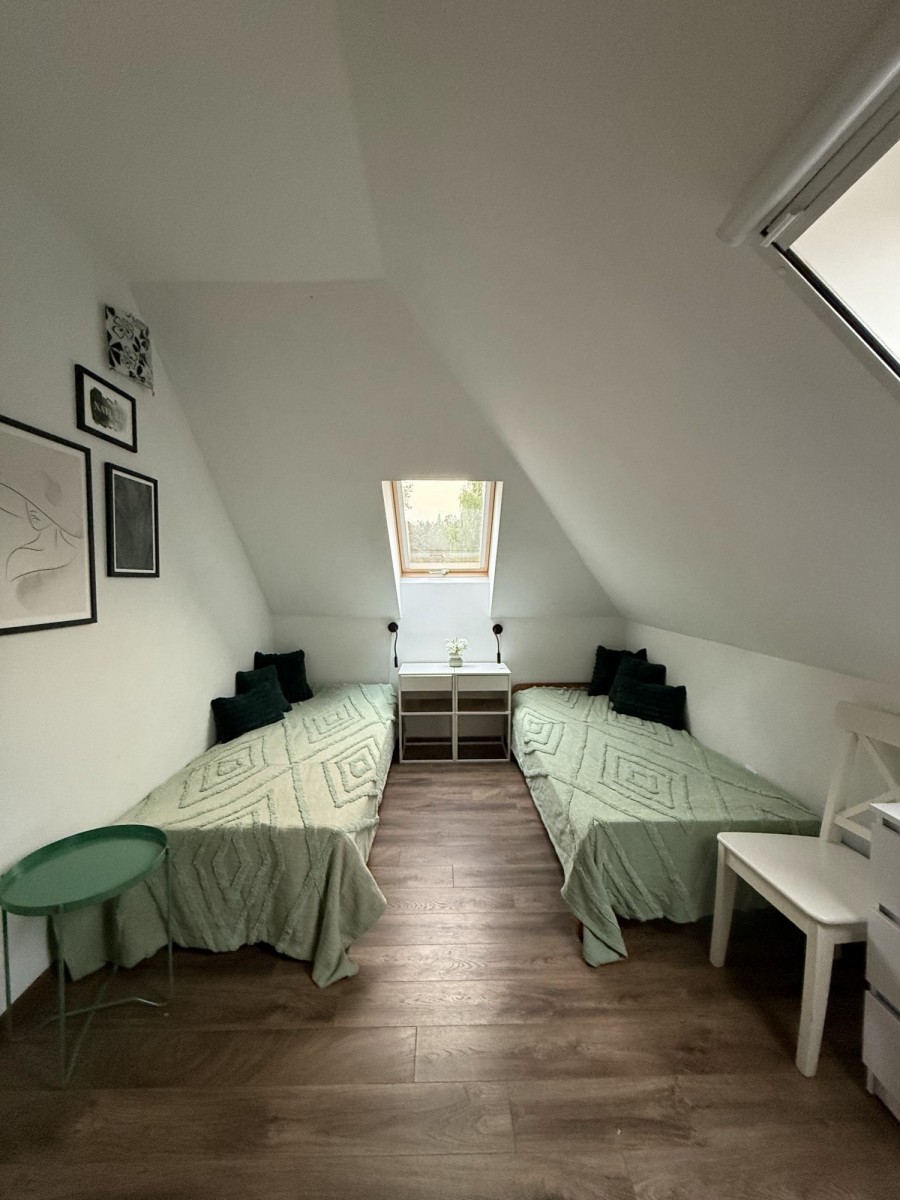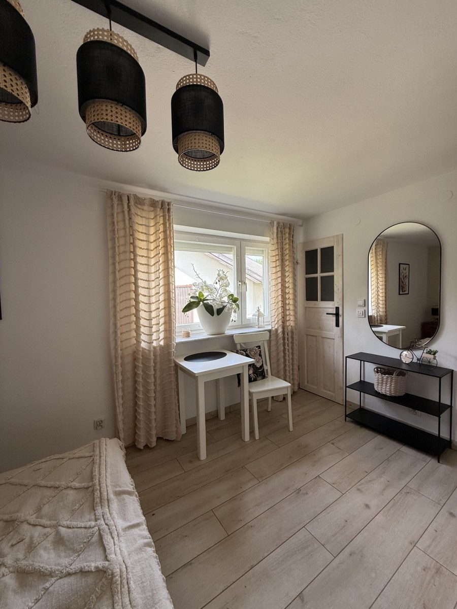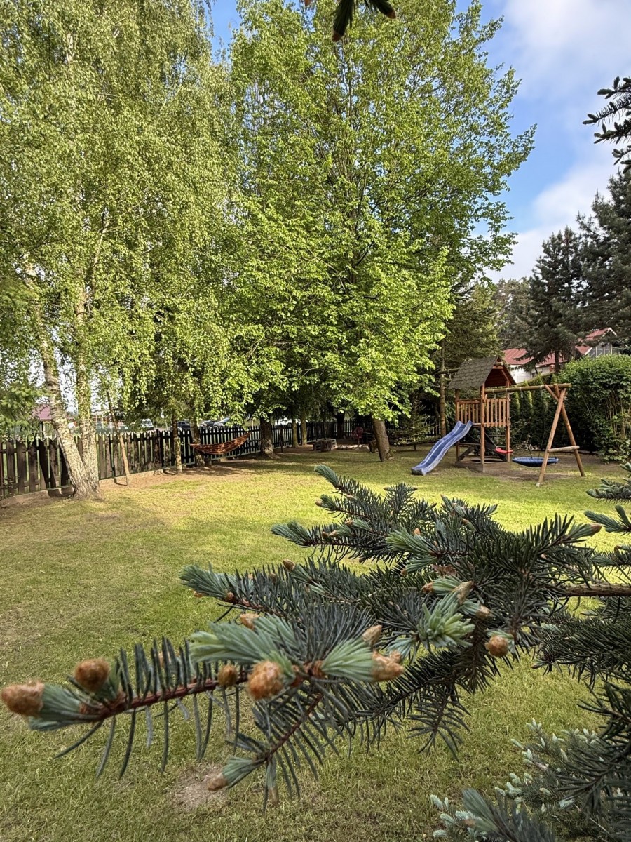 Dom jest przestronny, zadbany i niezwykle przytulny. Dominują jasne barwy, co nadaje ciepła i uroku. Jednym z atutów jest funkcjonalny rozkład pomieszczeń. Serce domu stanowi przestronny, jasny salon połączony z kuchnią. Jest to idealne miejsce na wspólne wieczory przy kominku, rodzinne spotkania i relaks po dniu pełnym przygód. Funkcjonalność parteru uzupełnia sypialnia wraz z łazienką oraz druga łazienka, co pozwala na wygodne życie na jednym poziomie. Na poddaszu znajdują się łazienka oraz trzy sypialnie - jasne i przytulne, a każda z nich stwarza idealne warunki do wypoczynku dla rodziny lub grupy przyjaciół, którzy pragną spędzić niezapomniane chwile w jednym miejscu.