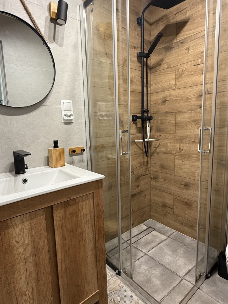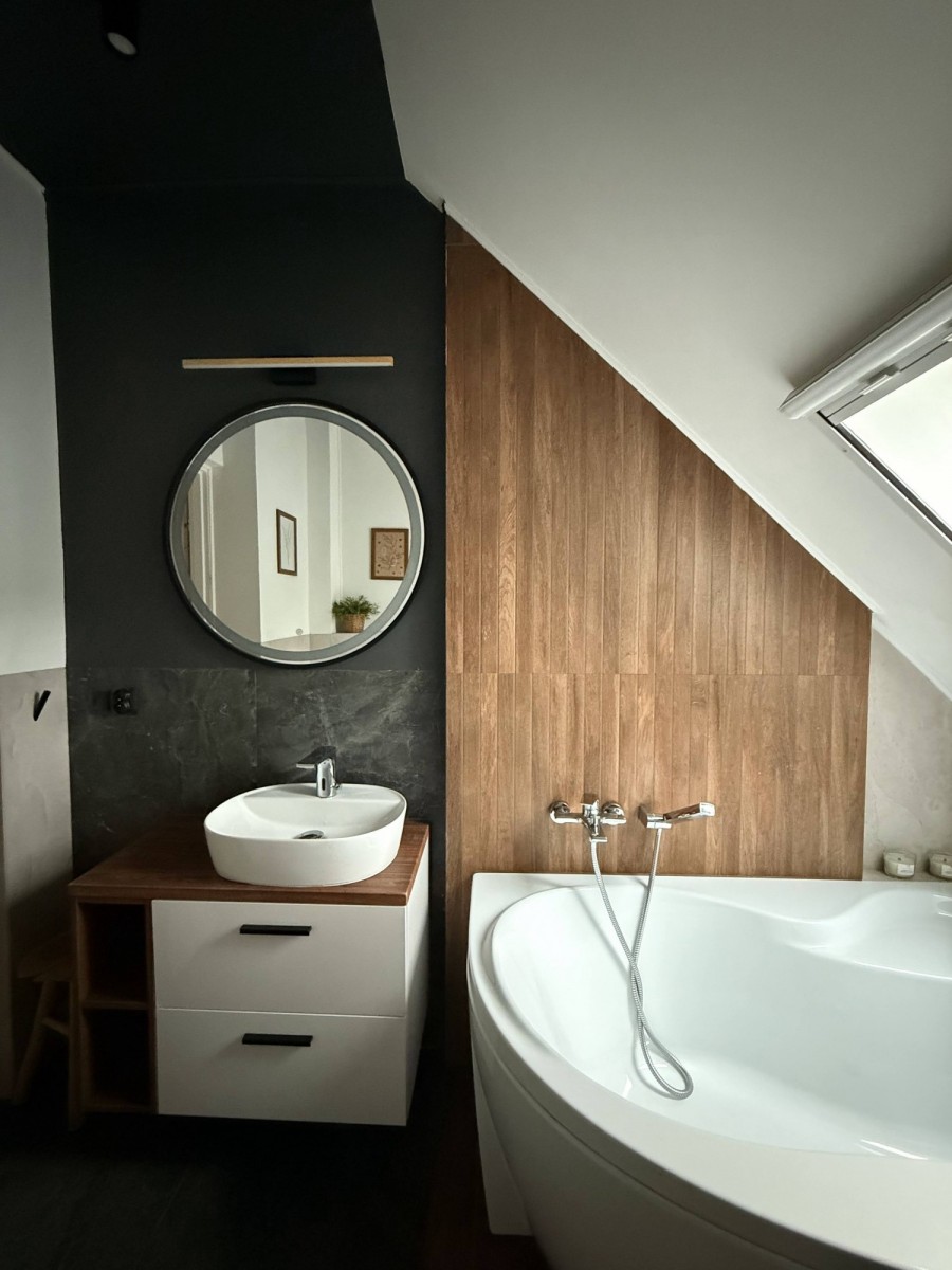 Łazienki na parterze wyposażone w wygodne kabiny prysznicowe, zaś na poddaszu - w wannę.
