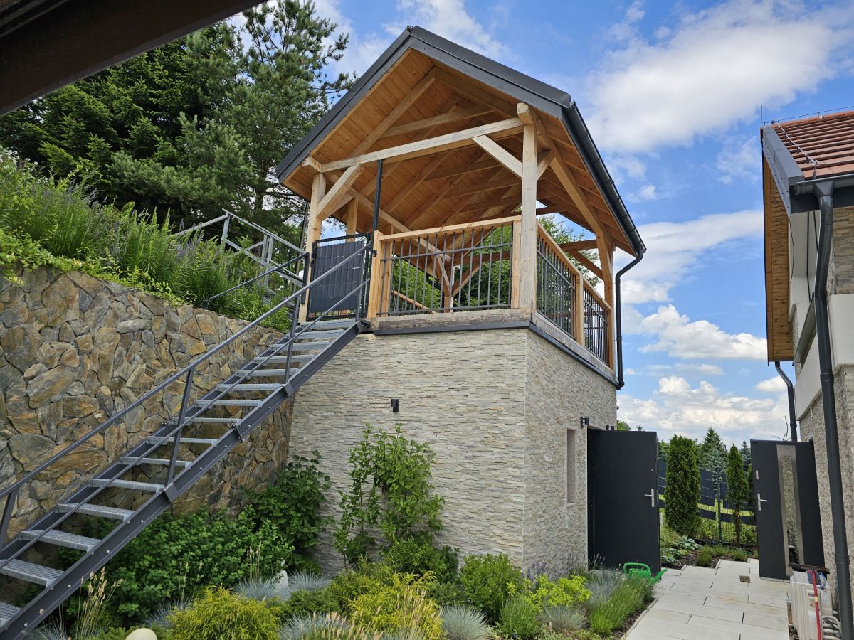 Niewątpliwą atrakcją jest zewnętrzny, zamykany basen z ciepłą wodą. Na dużym wybrukowanym tarasie znajduje się grill z zadaszonym miejscem do relaksu i biesiadowania.
