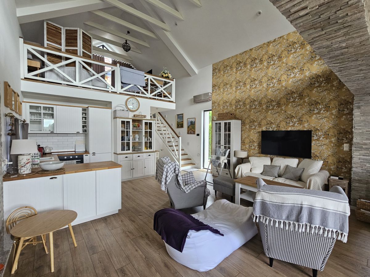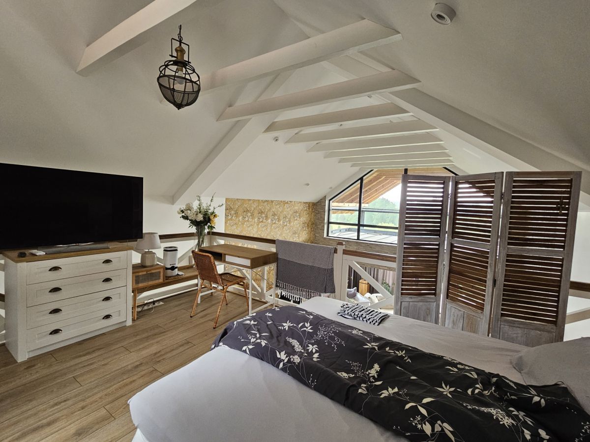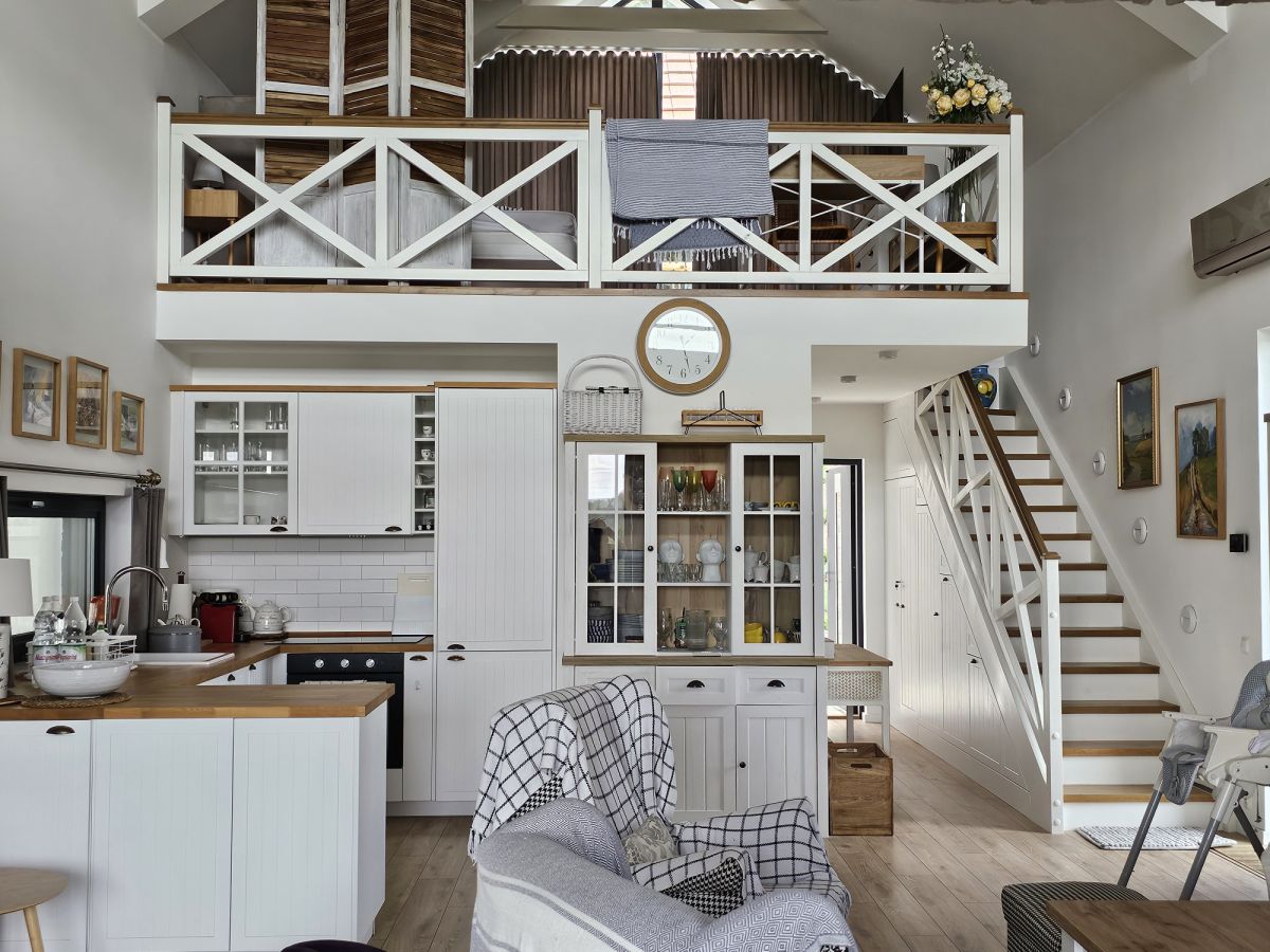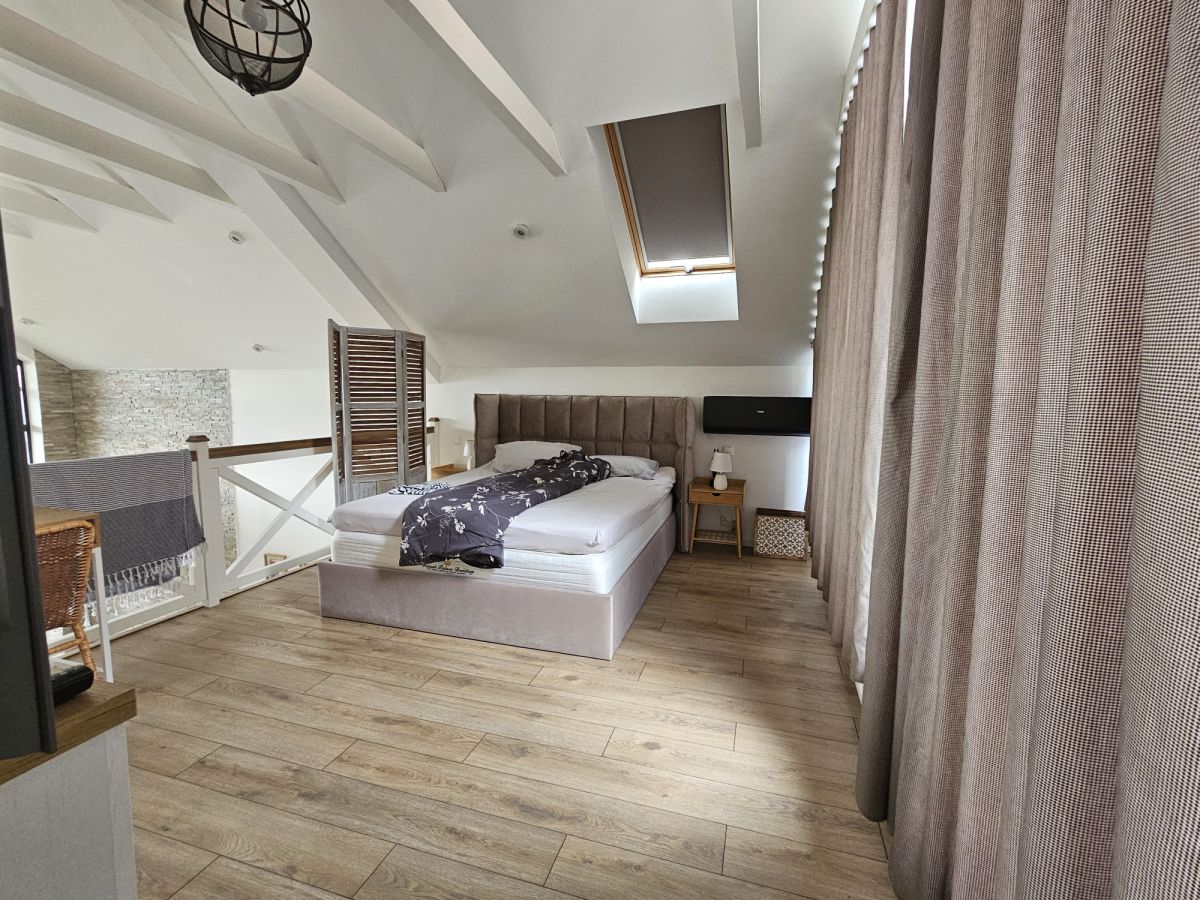 Na tym poziomie jest również kuchnia z jadalnią, mała sypialnia, łazienka z prysznicem i pokój z jacuzzi. Główna sypialnia znajduje się na antresoli.