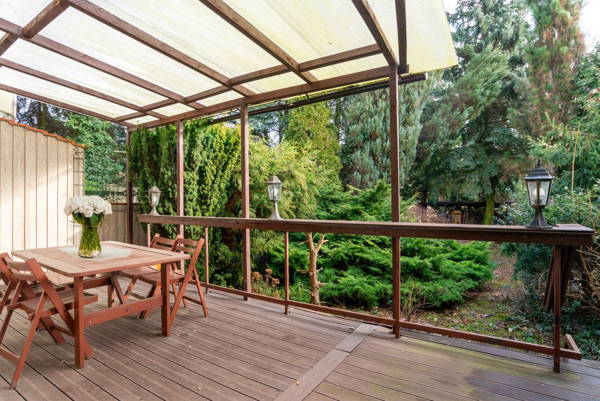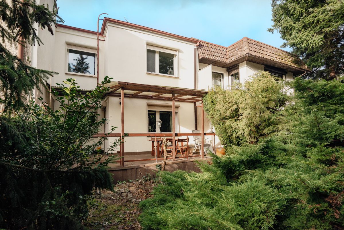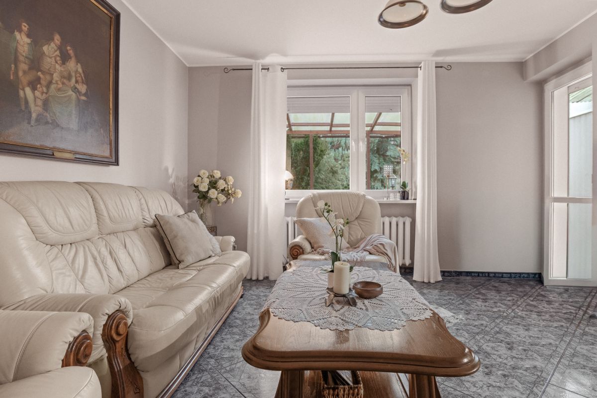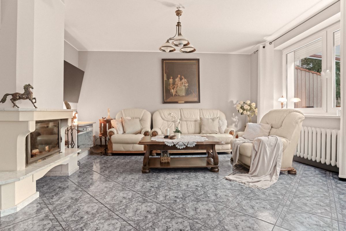 Dom utrzymany w dobrym, zadbanym standardzie, z wyraźnym podziałem na strefę dzienną i prywatną. Kuchnia po generalnym remoncie - nowa zabudowa meblowa oraz komplet nowoczesnego sprzętu AGD. Łazienka na parterze wykończona w wysokim standardzie, z ogrzewaniem podłogowym, dużą narożną wanną, prysznicem, dwiema umywalkami oraz oknem. Neutralna kolorystyka wnętrz zapewnia dużą elastyczność aranżacyjną. Elewacja budynku została odświeżona kilka lat temu. Z salonu wyjście na taras i zadbany ogród z dojrzałą, bujną roślinnością, dającą poczucie prywatności.