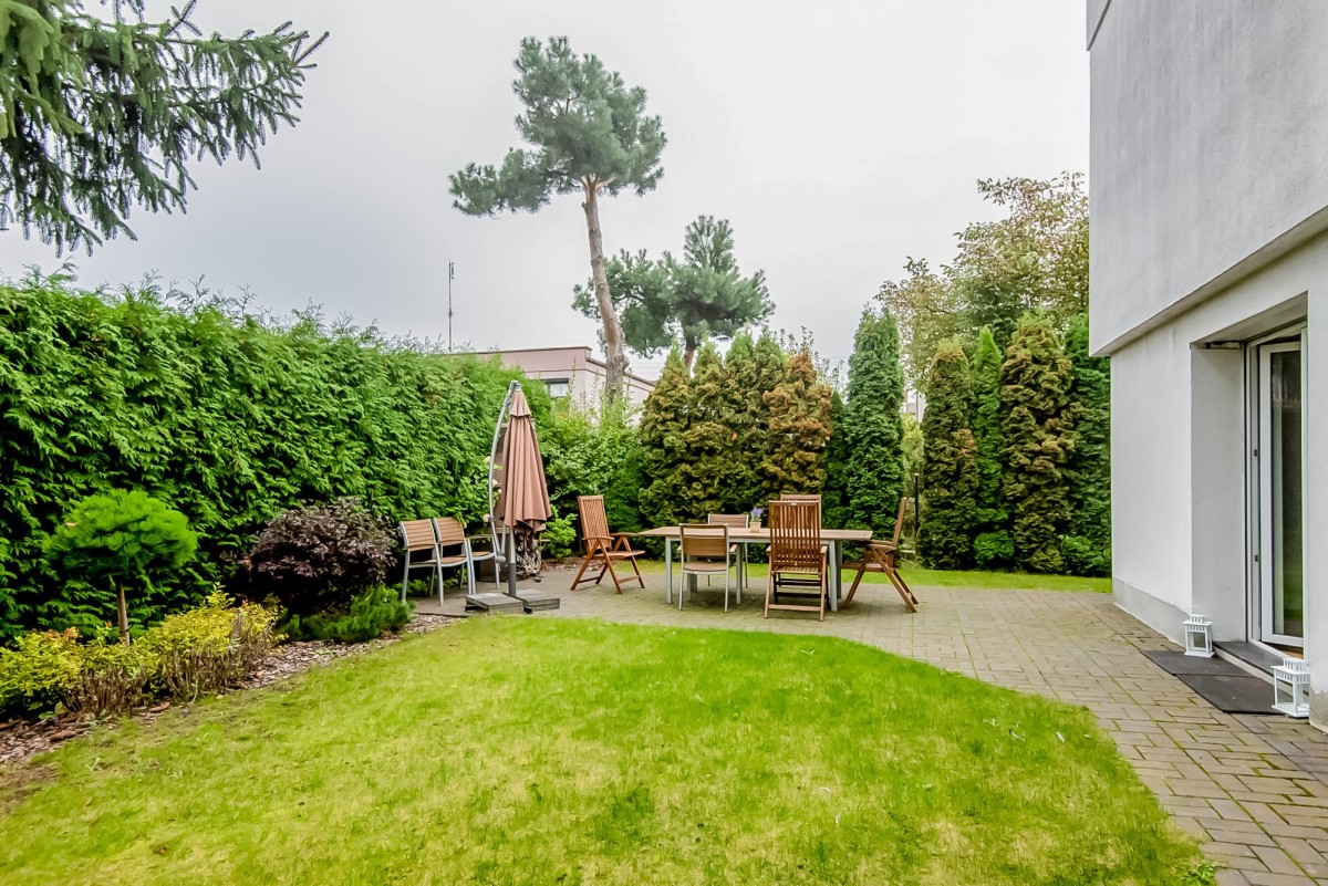 - Ogród - kameralny, w pełni zagospodarowany, z wydzieloną strefą relaksu, miejscem na grilla i placem zabaw dla dzieci