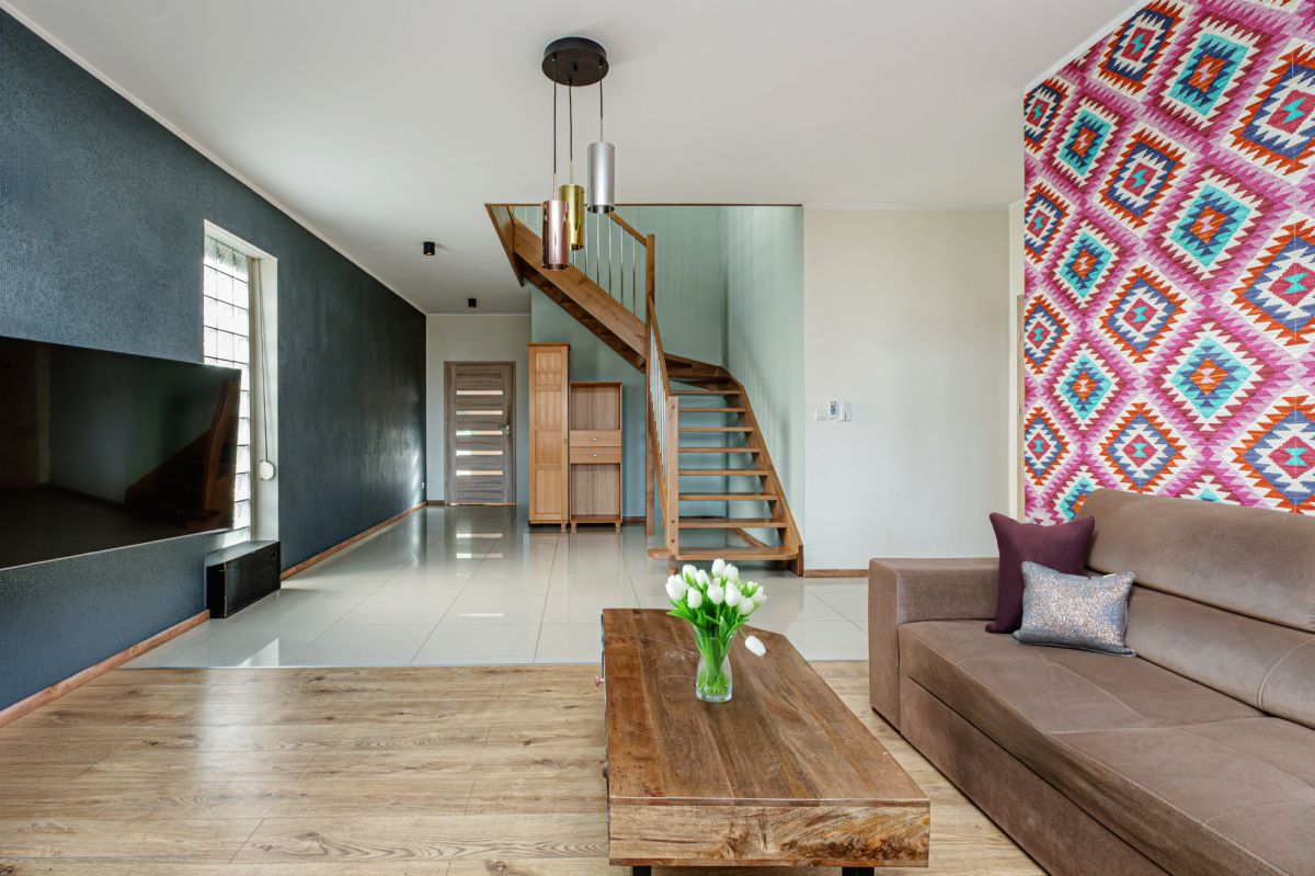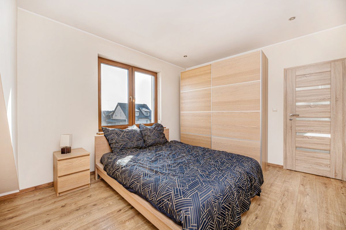 Łącznie 4 pokoje i 2 łazienki — funkcjonalny układ dla rodziny lub osób pracujących częściowo z domu.