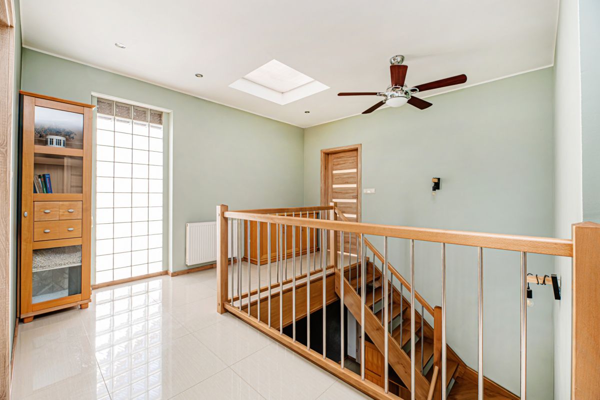 Na sprzedaż funkcjonalny dom w zabudowie bliźniaczej o powierzchni całkowitej 161,94 m² (144,39 m² użytkowej), położony na ogrodzonej działce 450 m² w miejscowości Rokietnica.