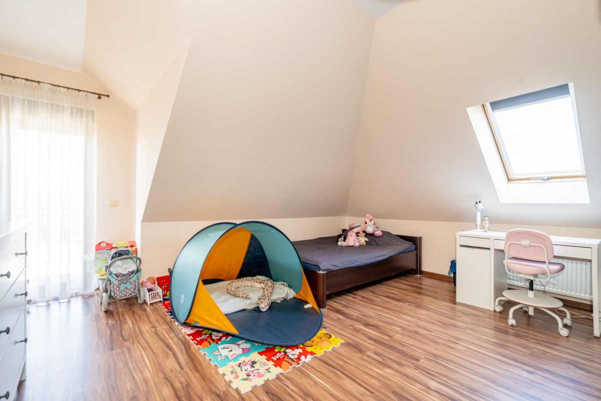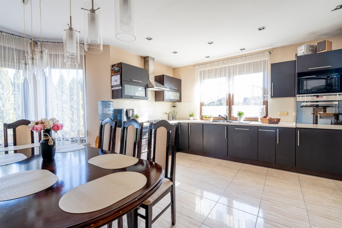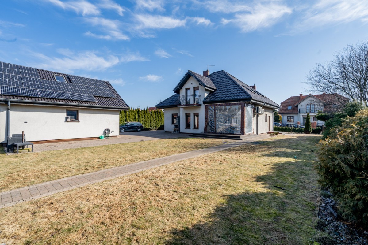 Dom zachwyca przestronnym wnętrzem, na które składa się jasna, otwarta kuchnia z jadalnią oraz oddzielny salon z nastrojowym kominkiem. Nieruchomość położona jest na dużej, 1006-metrowej działce z pięknie zagospodarowanym ogrodem i garażem dwustanowiskowym. Kameralne otoczenie zabudowy jednorodzinnej oraz dogodny dojazd do Poznania, Kostrzyna i Swarzędza, stanowią jej dodatkowy atut.