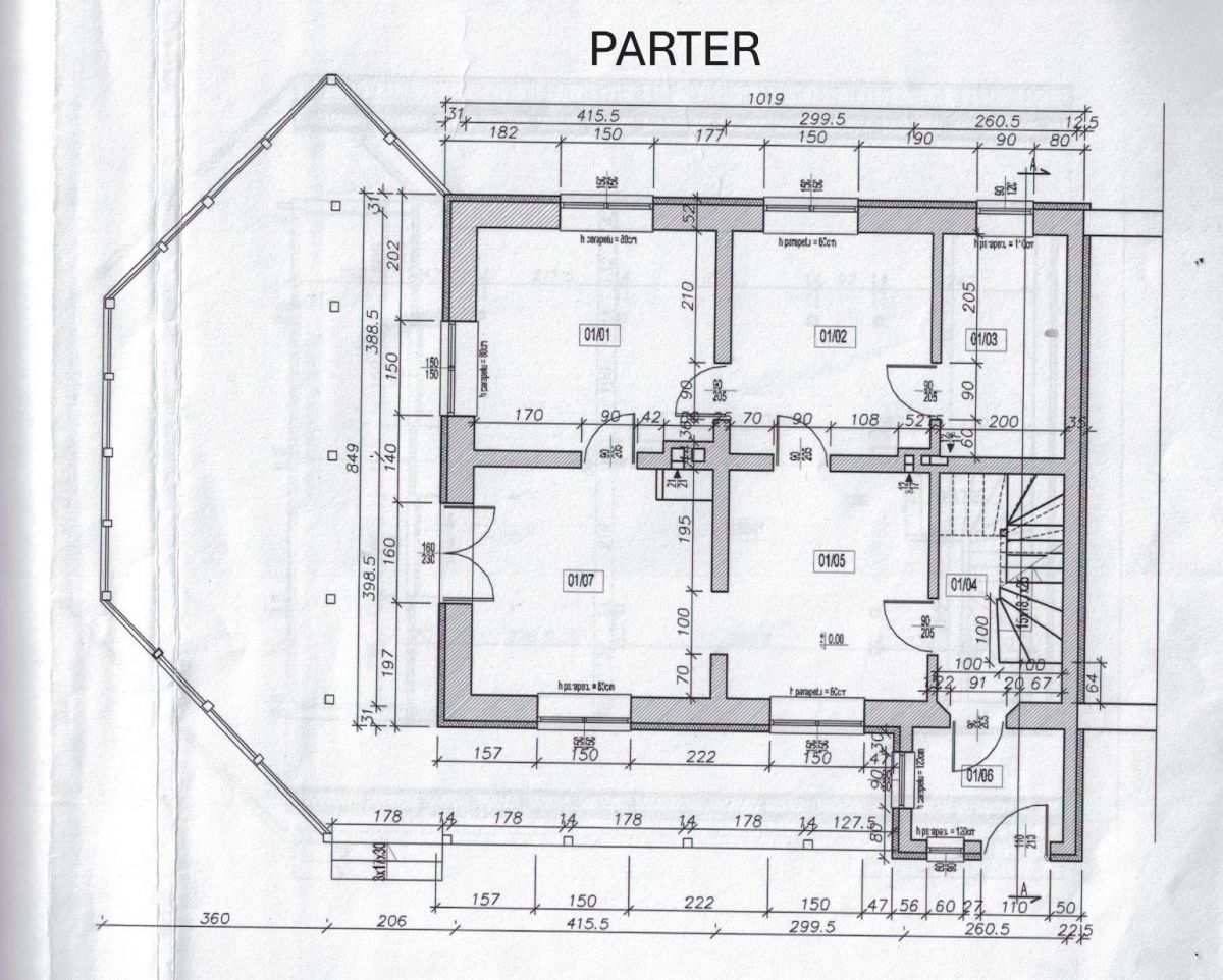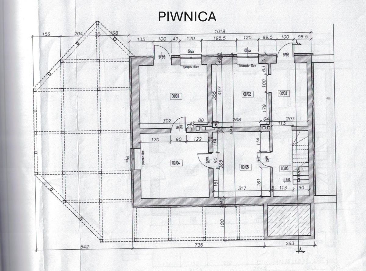 - ściany fundamentowe - istniejące - wykonane z kamienia łupanego na zaprawie cementowej