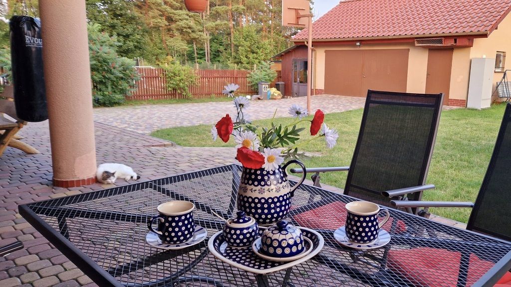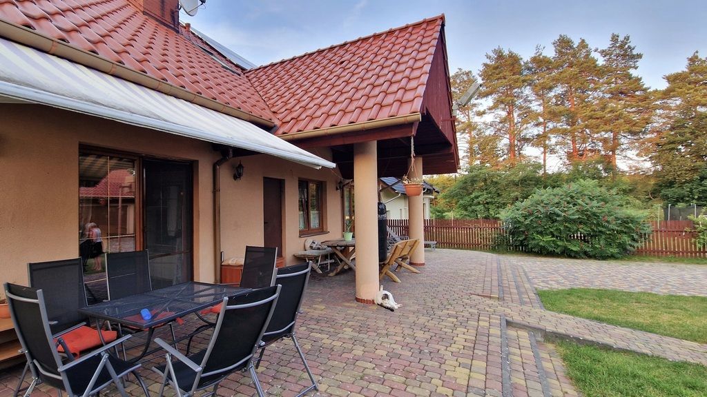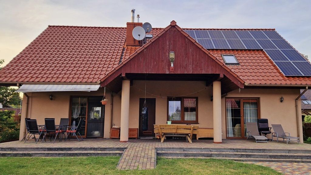 - Media i technologia: dom posiada instalację Fotowoltaiczną (5,4 kW), ogrzewanie podłogowe (piec gazowy dwufunkcyjny), światłowód, przydomową oczyszczalnię ścieków oraz stację uzdatniania wody. Niskie koszty utrzymania: gazowe ogrzewanie podłogowe zapewnia niskie rachunki, jest bardzo wydajne. Dodatkowo od marca do końca października ciepłą wodę zapewnia instalacja fotowoltaiczna.