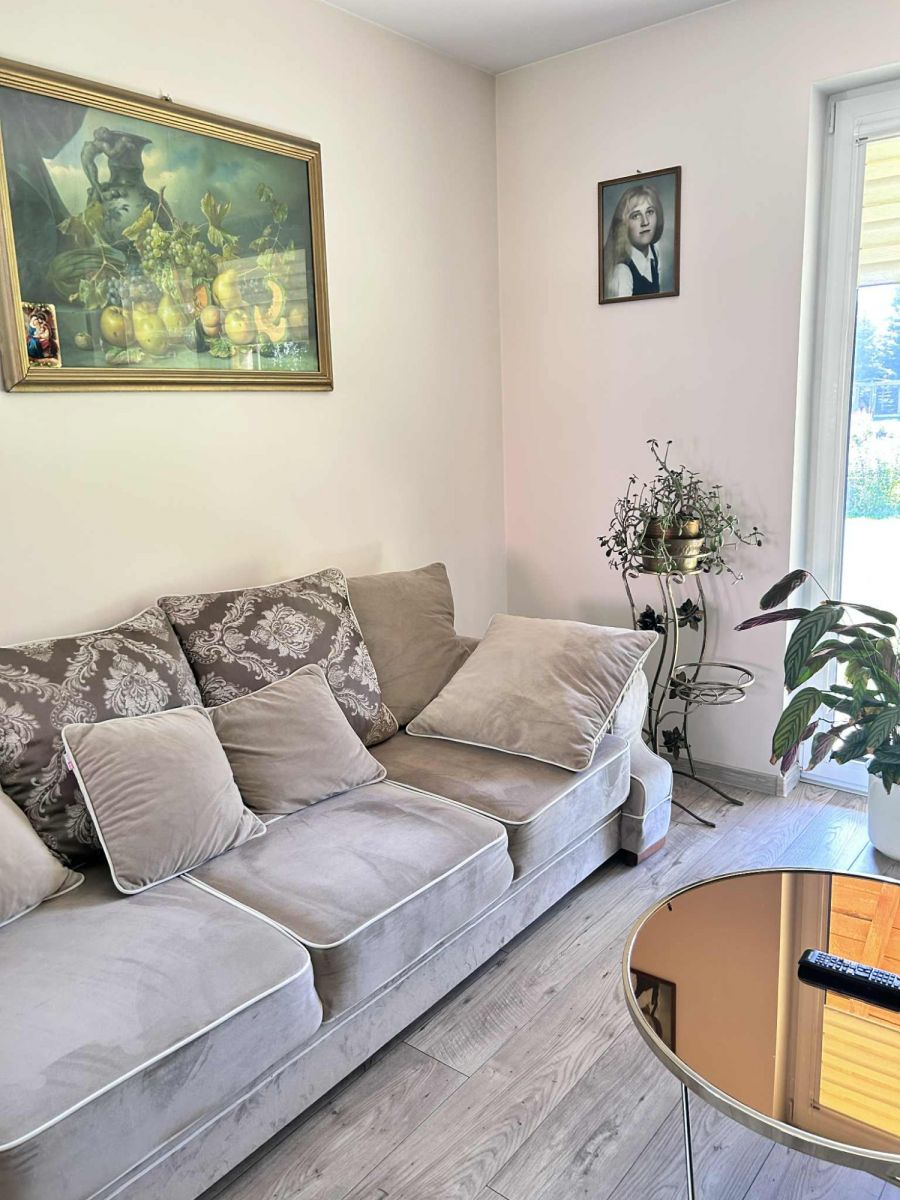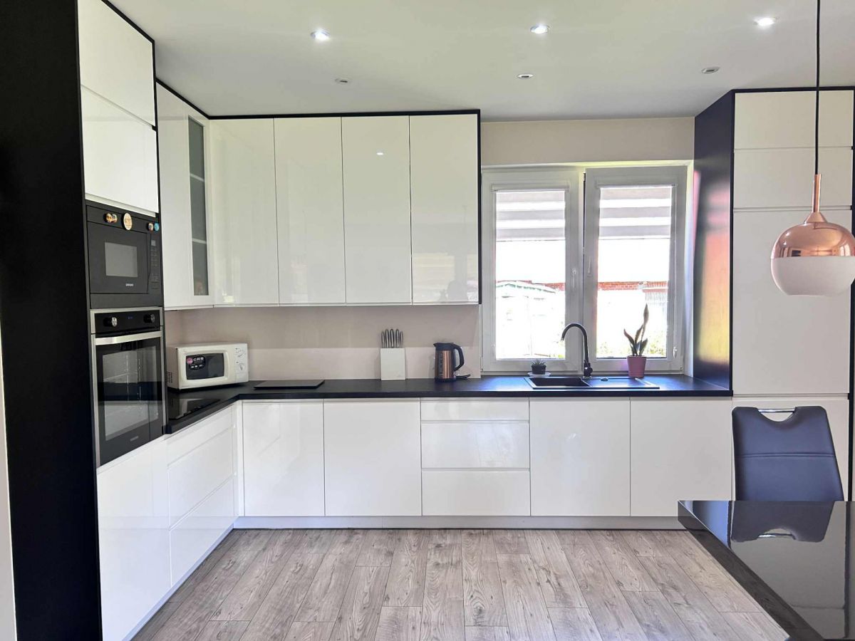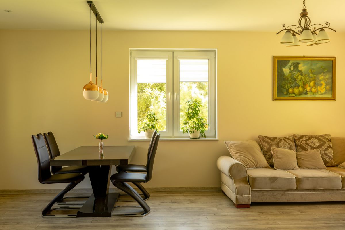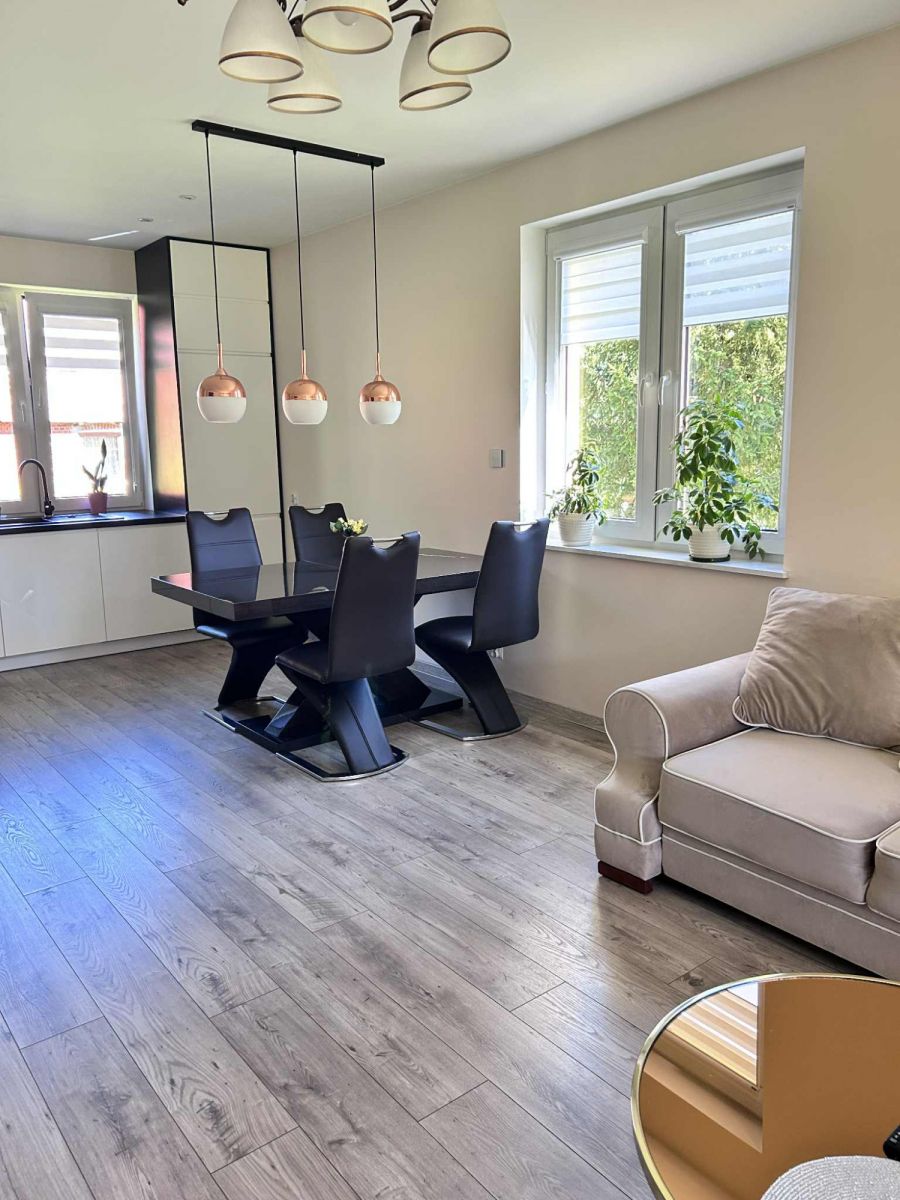 Słoneczny salon z otwartą kuchnią: Serce domu, z którego wyjdziesz bezpośrednio do ogrodu. Idealne miejsce na wspólne śniadania z widokiem na zieleń.
