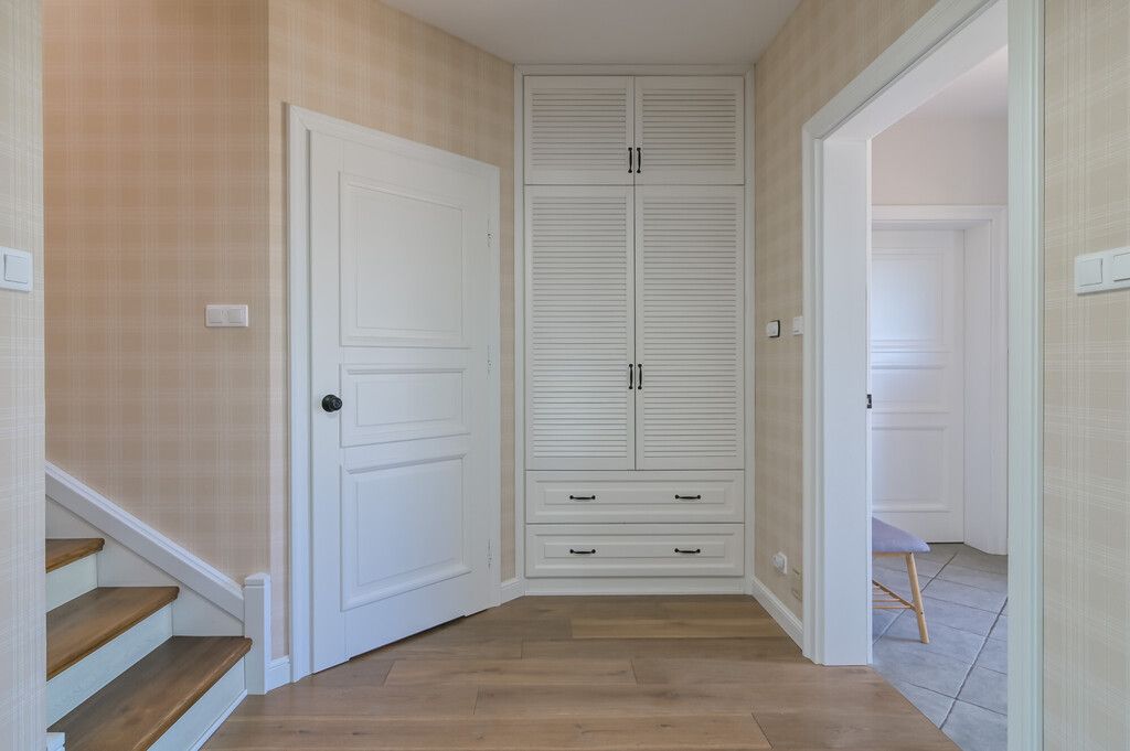 Funkcję przechowalnictwa spełnia oddzielna, pojemna garderoba z oknem.