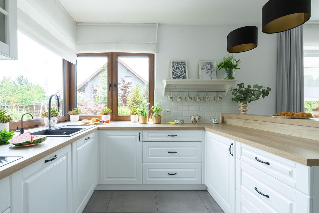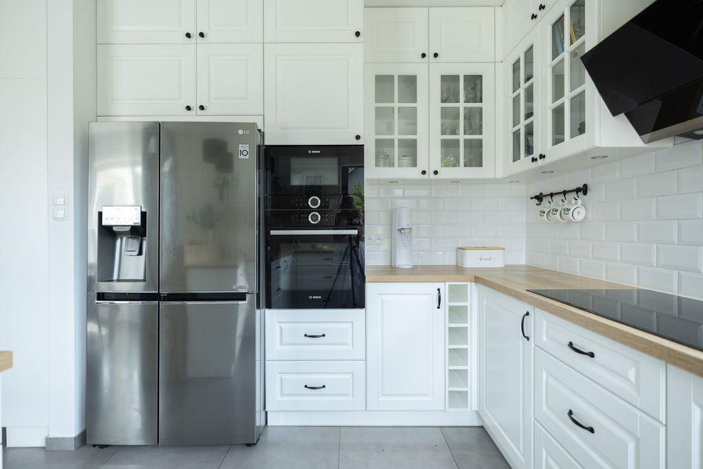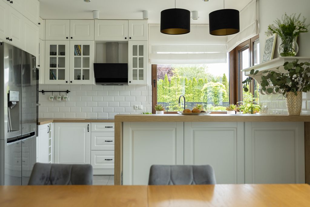 Dom został wykończony z najwyższą starannością i wyposażony w wysokiej jakości meble oraz sprzęty. Na parterze znajduje się przestronna, nowoczesna kuchnia z meblami wykonanymi na zamówienie przez stolarza oraz sprzętem AGD marki Bosch. Kuchnia połączona jest z jadalnią, tworząc przytulną przestrzeń do codziennych posiłków przy dużym stole, który po rozłożeniu pełni funkcję bilarda! Tuż obok znajduje się jasny i przestronny salon z kominkiem oraz strefą wypoczynkową. Z salonu prowadzi wyjście na zadaszony taras, wyposażony w komplet mebli ogrodowych.