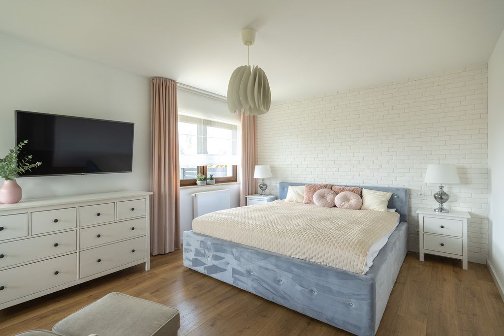 Na piętro prowadzą eleganckie, drewniane schody. Poddasze mieści trzy przestronne pokoje, każdy z własną garderobą i klimatyzacją. Z przedpokoju można wyjść na duży taras, który stanowi osobne wejście do jednego z pokoi. Główna sypialnia wyposażona jest w prywatną łazienkę z prysznicem. Dodatkowo do dyspozycji mieszkańców pozostaje przestronna, główna łazienka z wydzieloną pralnią. Z przedpokoju prowadzi również wejście na dach, który pełni funkcję dodatkowego magazynu.