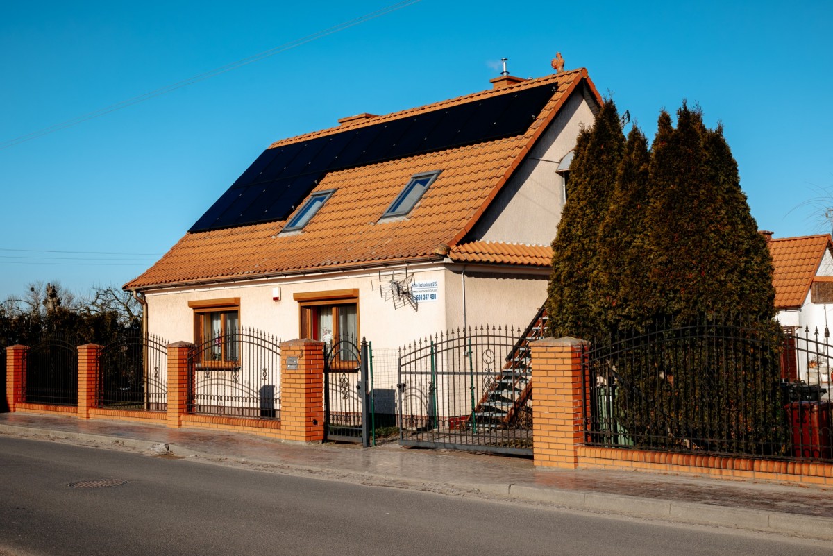 Dom wyposażany jest w instalację fotowoltaiczną o mocy 5 KW.