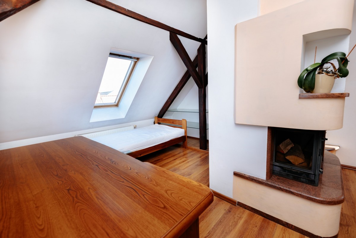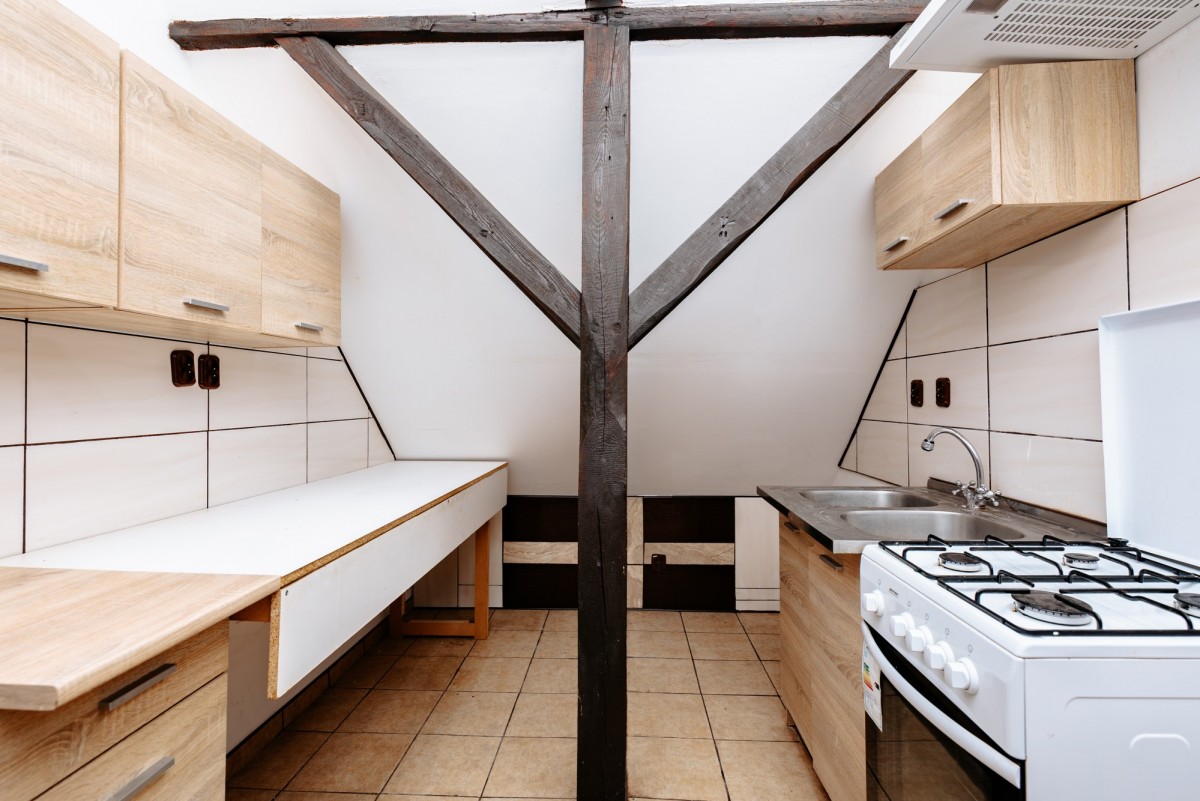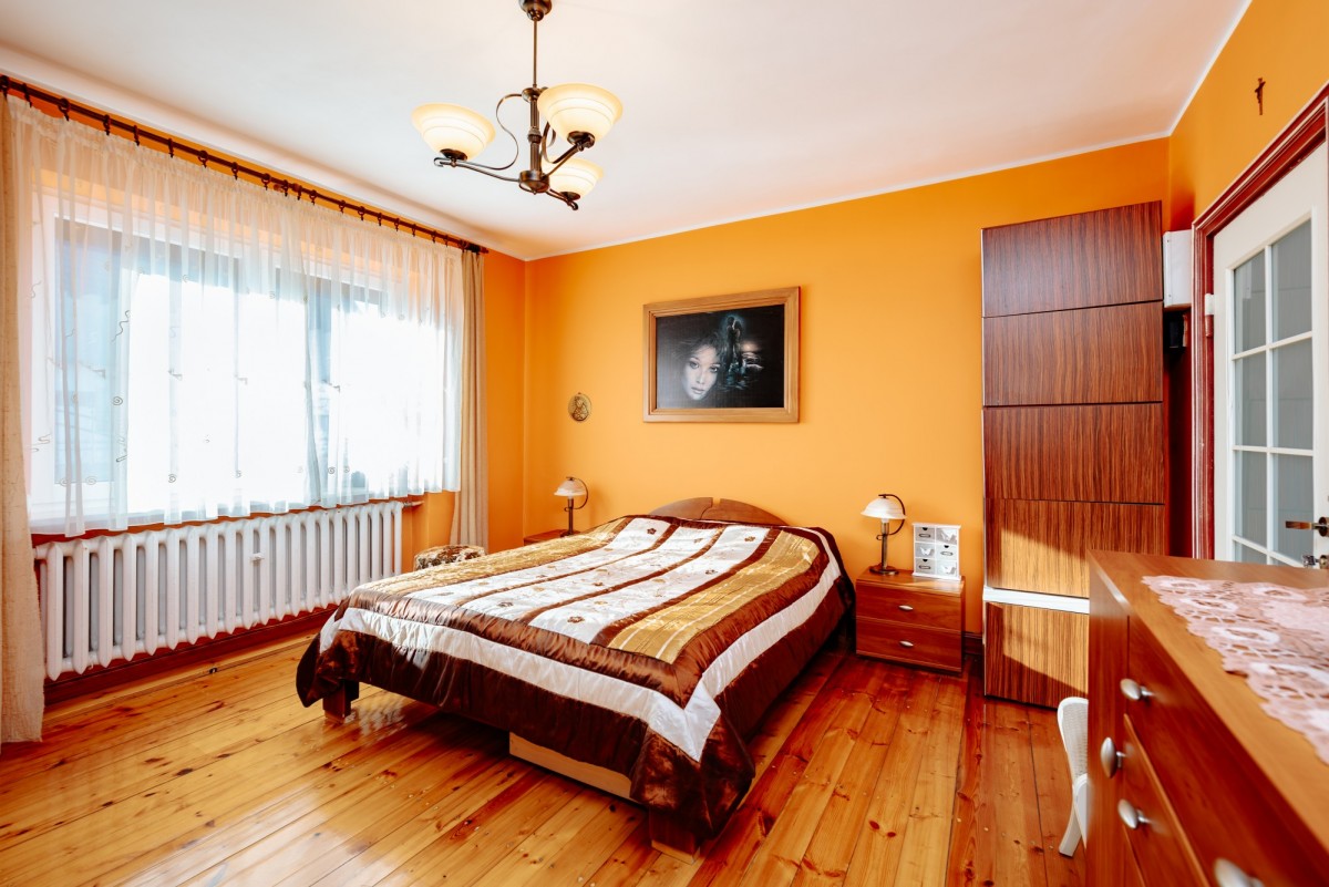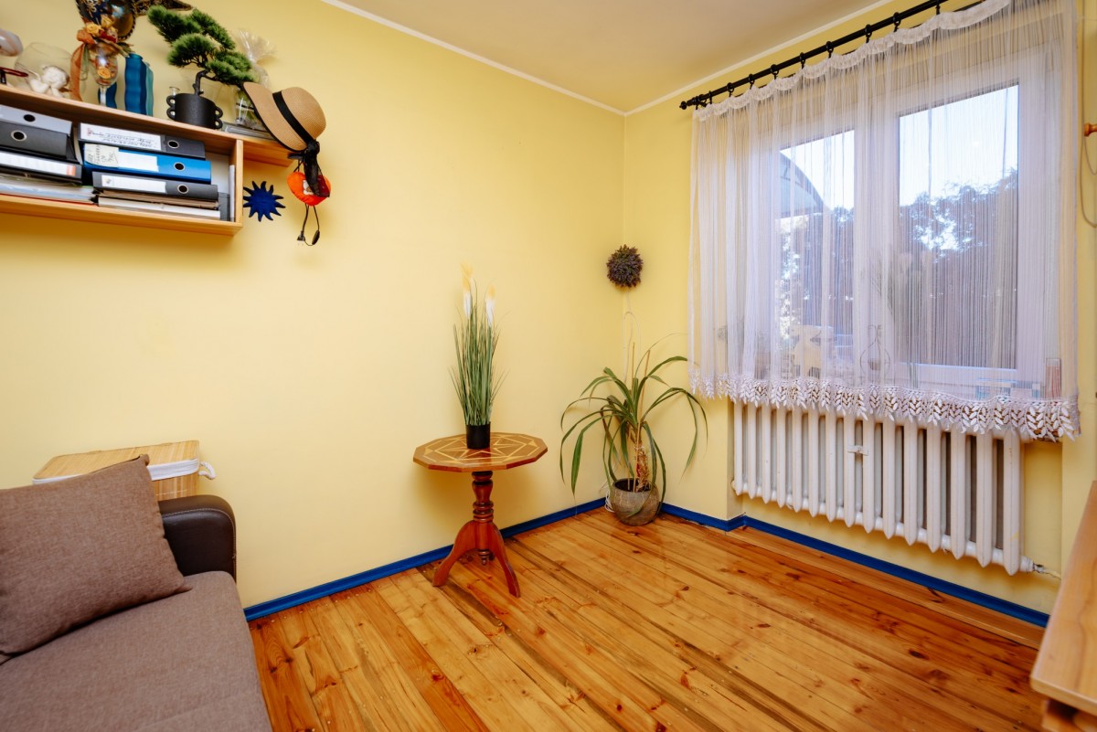 W stanie obecnym dom ma wydzielone 2 strefy mieszkalne - główny parter z ogrodem + mieszkanie na piętrze z niezależnym wejściem z ulicy.