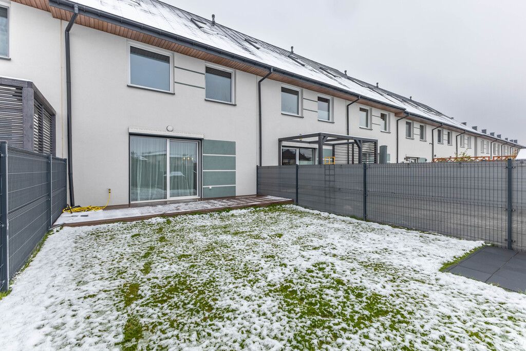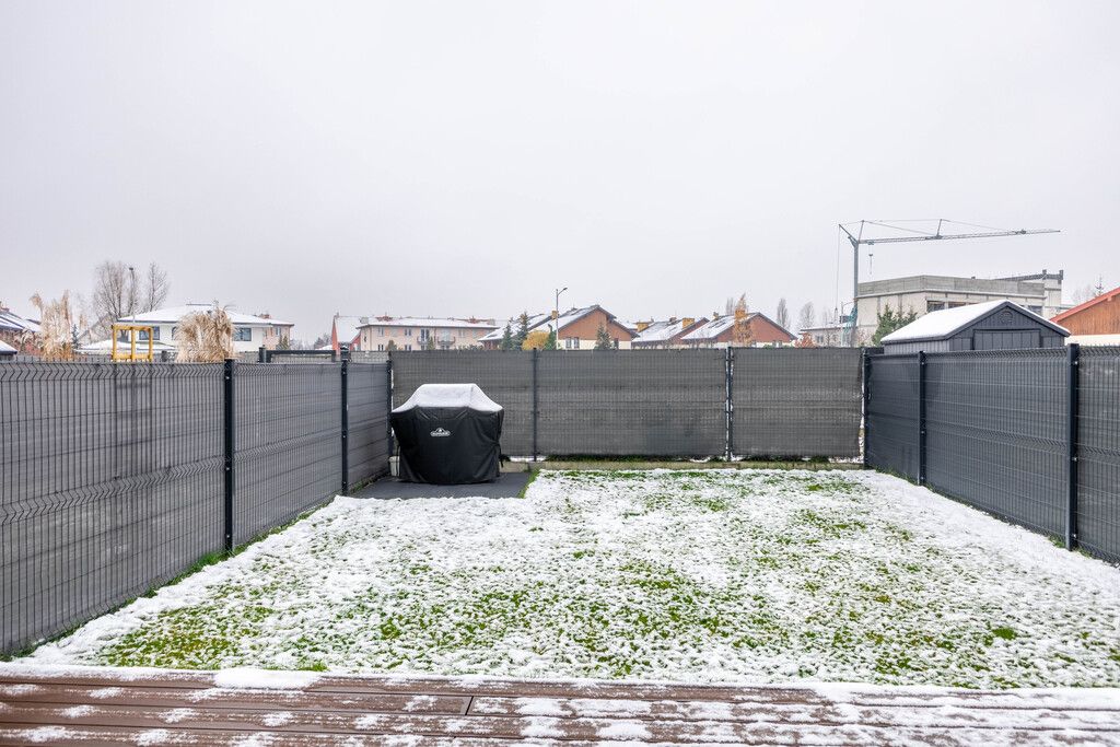 duży ogródek z tarasem z deski kompozytowej (wykonany w 2025 r.) oraz pięknym trawnikiem z rolki (2024 r.) wraz z odwodnieniem i siatką przeciw kretom.