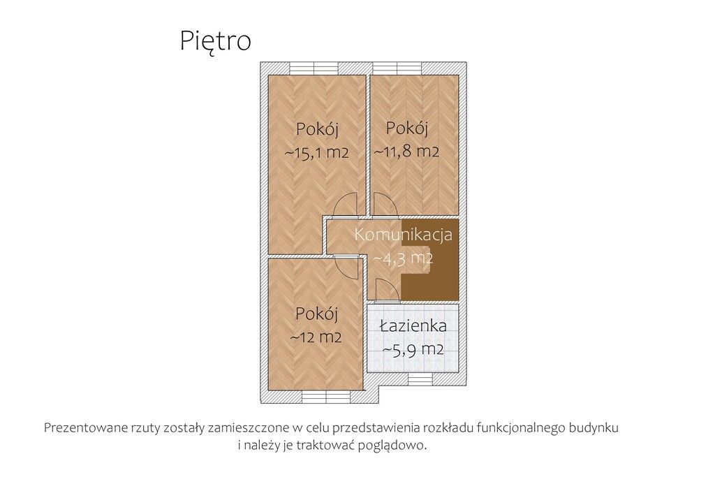 Piętro: trzy sypialnie oraz łazienka