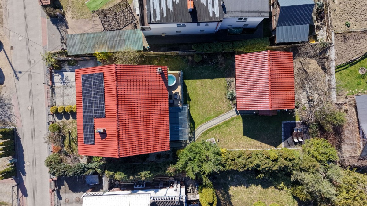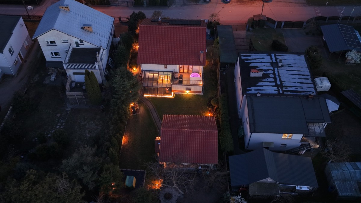 Przestronny ogród o powierzchni 720 m², perfekcyjnie zagospodarowany, z licznymi nasadzeniami, automatycznym systemem nawadniania oraz robotem koszącym.