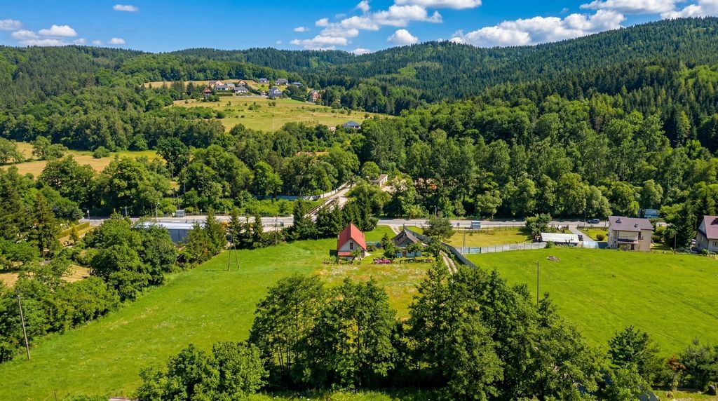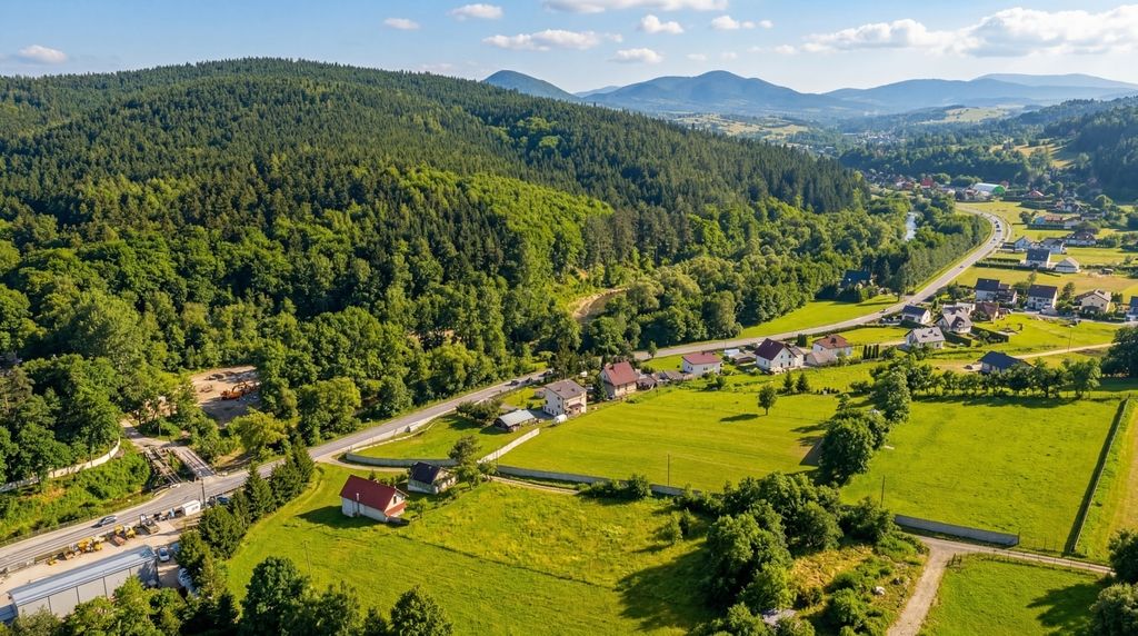 Działka oferuje doskonałą lokalizację w otoczeniu pagórków i lasów.