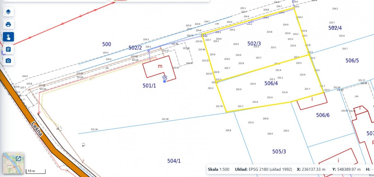 Access is via a paved, private road (co-owned) from an asphalt road (Leśna Street).