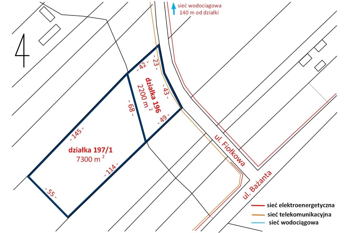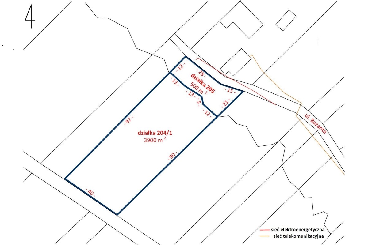 Linia telekomunikacyjna: na działce od strony ul. Bażanta.