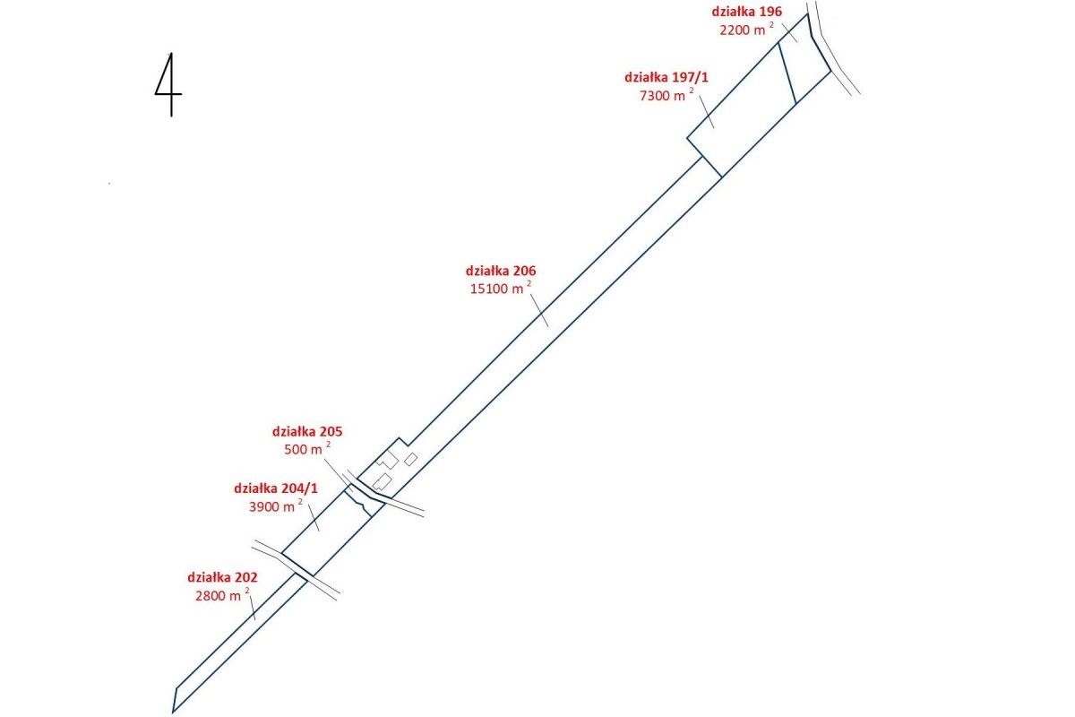Nieruchomość składa się z 6 działek. Jedna z działek zabudowana budynkiem mieszkalnym i stodołą, obydwa do generalnego remontu.