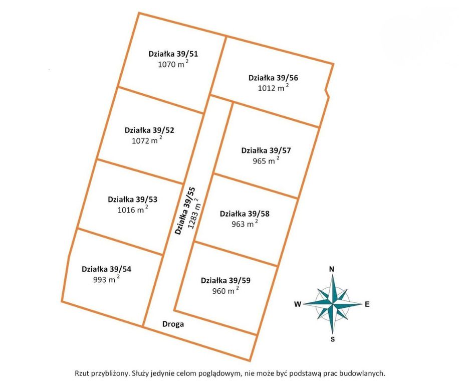 Działki w cenie 119 zł/m²:- Działka nr 39/59 – pow. 960 m²