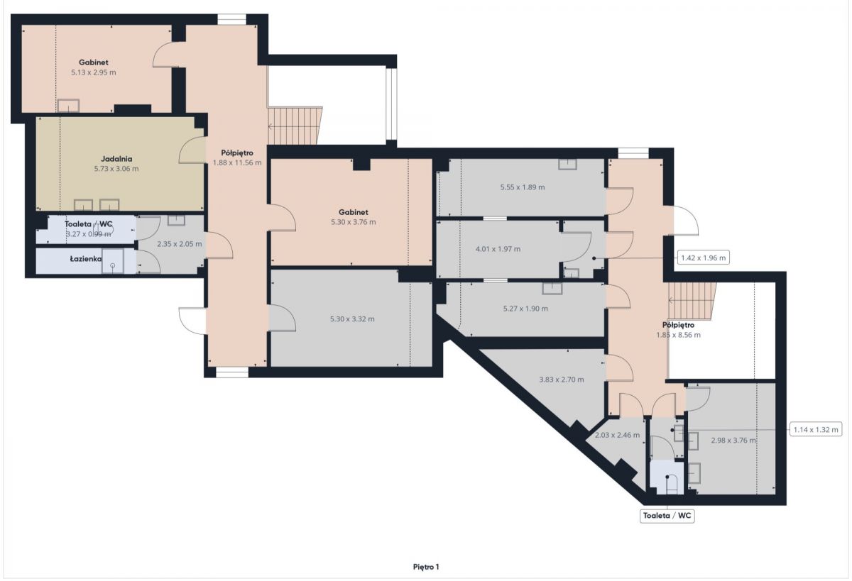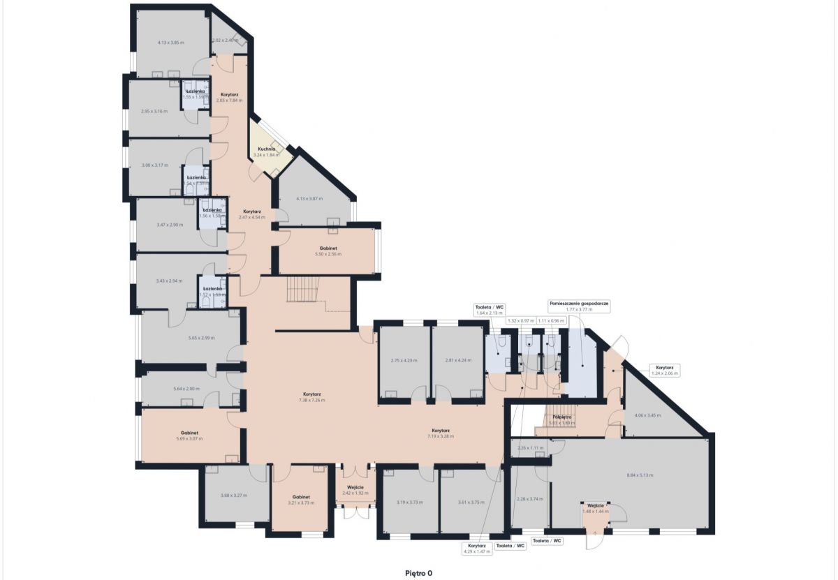 Część medyczna ulokowana jest na parterze. Na piętrze znajdują się pomieszczenia biurowe oraz socjalne z możliwością przekształcenia na dodatkowe gabinety lekarskie.