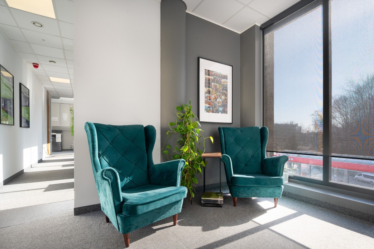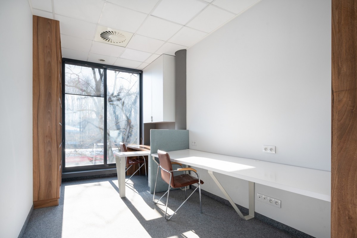Lokal oferuje elastyczny układ, umożliwiający aranżację zarówno w systemie open space, jak i z podziałem na gabinety. Duże przeszklenia zapewniają bardzo dobre doświetlenie wnętrz światłem dziennym, co przekłada się na komfort pracy.