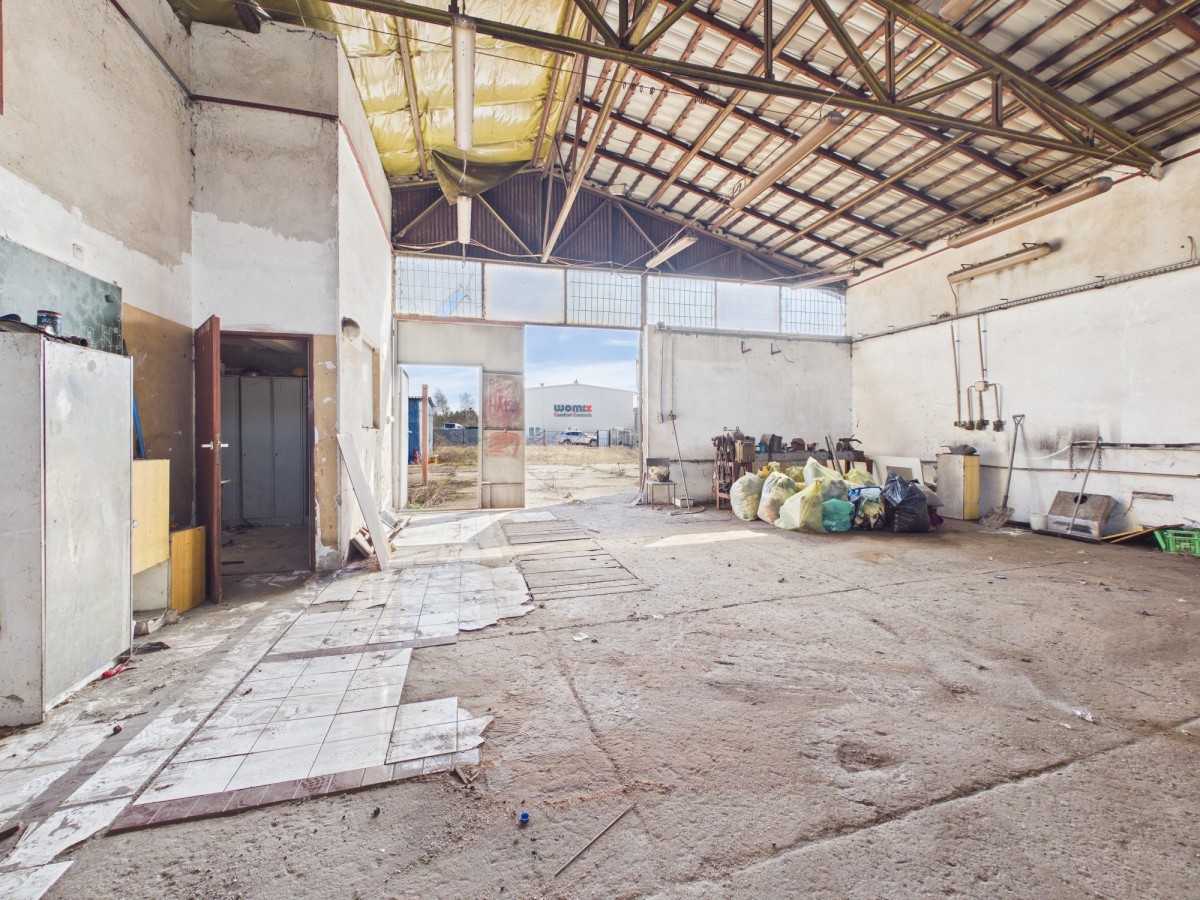 ➡️ Hala wcześniej wykorzystywana jako warsztat ślusarski - po remoncie może pełnić różnorodne funkcje (produkcja, magazyn, serwis, pracownia).