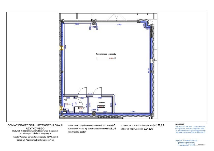 Na sprzedaż nowy lokal użytkowy o powierzchni 79,25 m², położony na parterze nowoczesnego budynku mieszkalnego przy ul. Kazimierza Bieńkowskiego 17A we Wrocławiu (osiedle Żerniki).