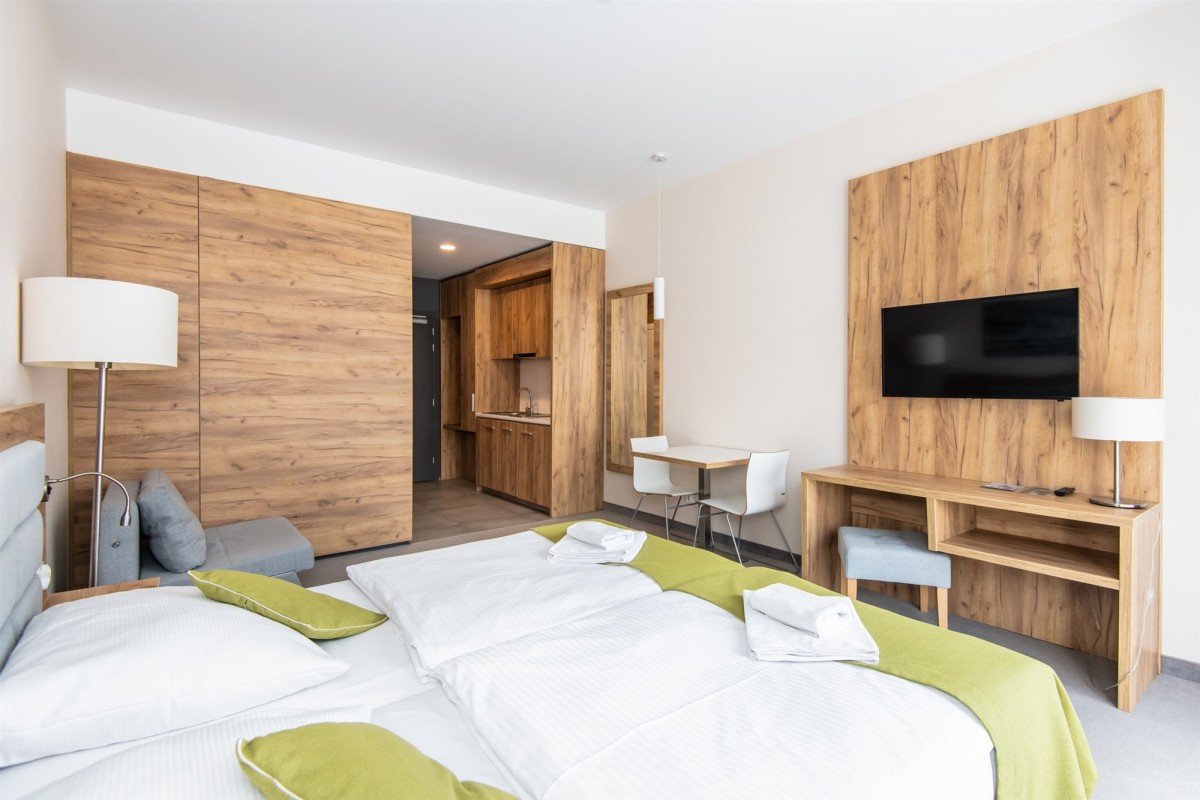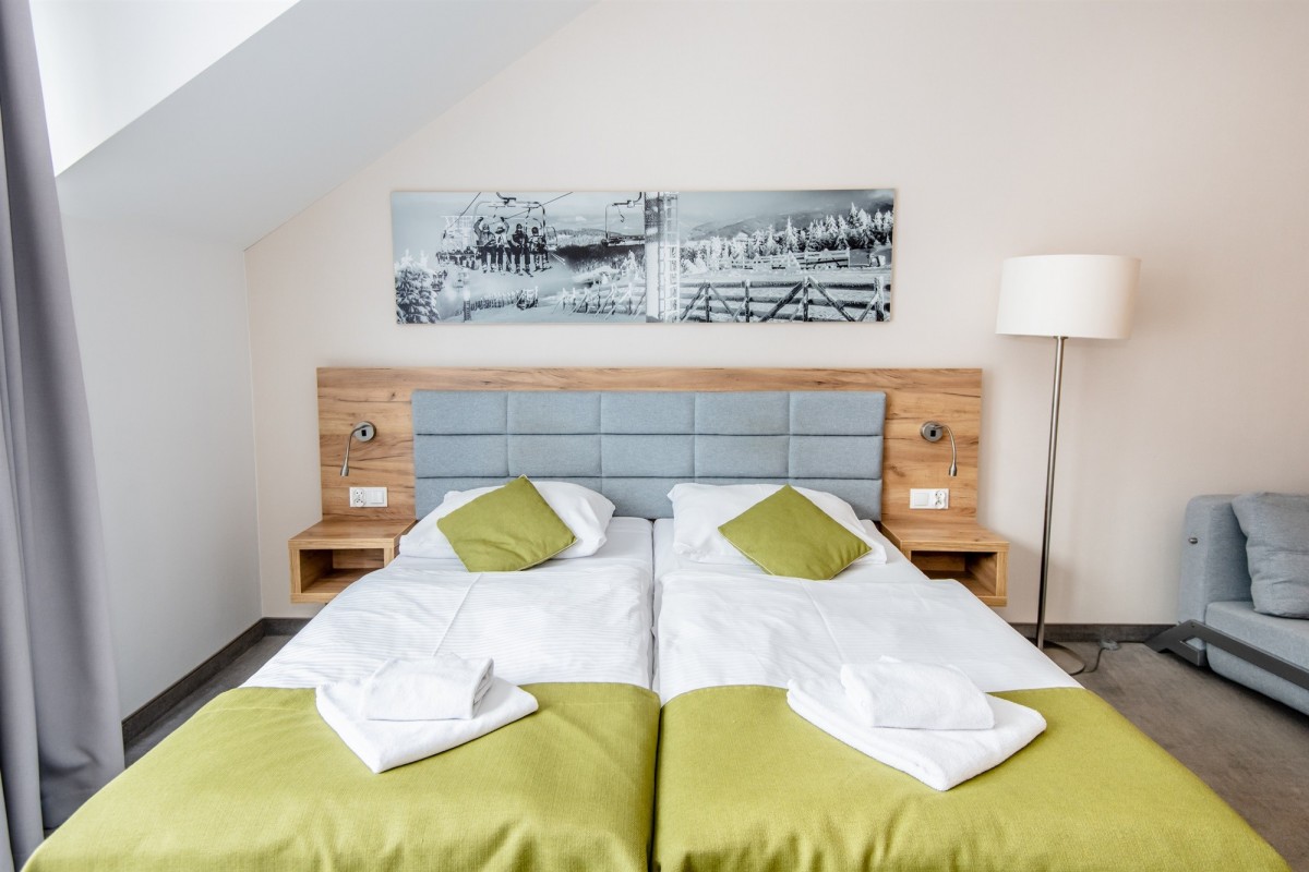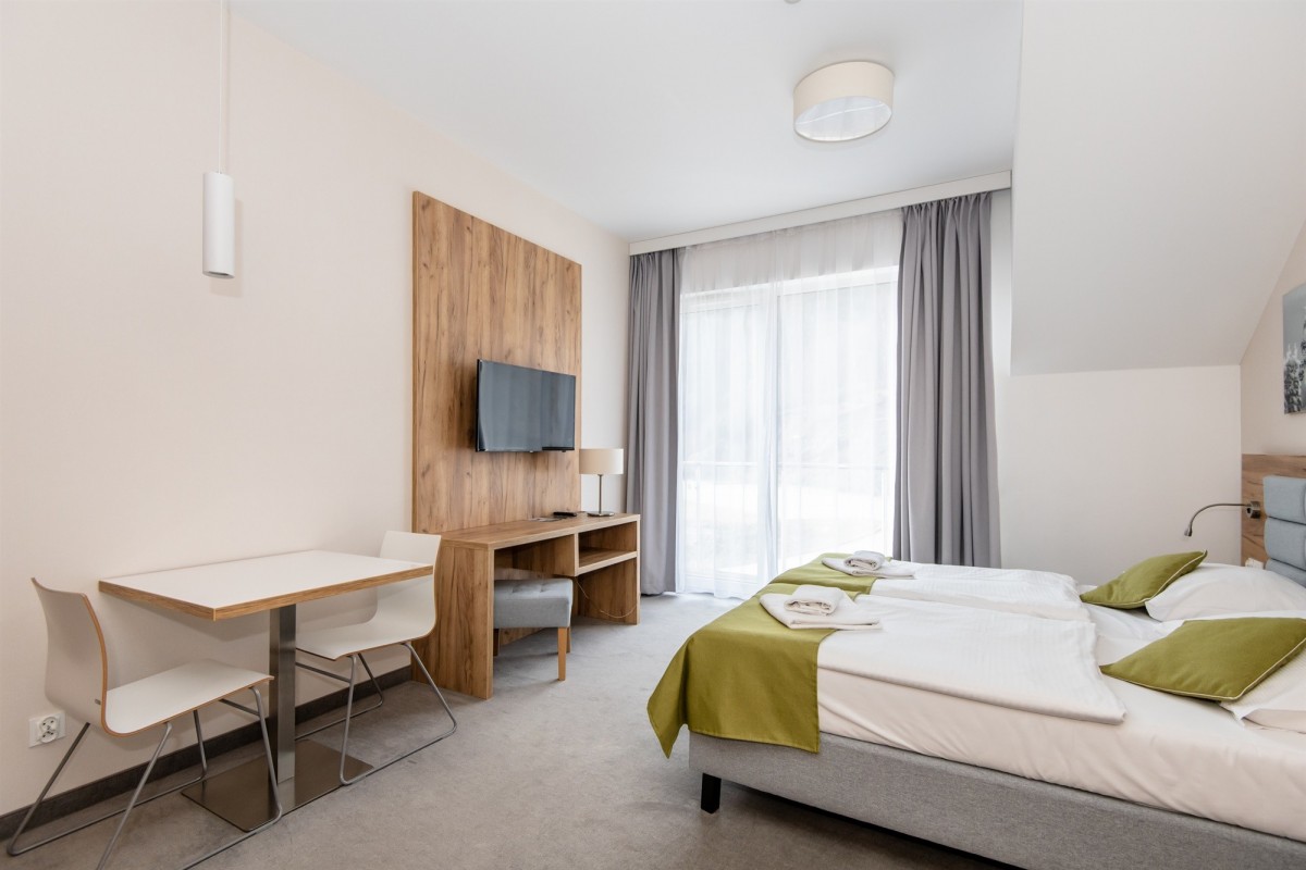 - infrastruktura: strefa Wellness&Spa, basen wewnętrzny z widokiem na góry, brodzik dla dzieci, jacuzzi oraz bicze wodne, saunarium, restauracja, sale konferencyjne, sale bankietowe, lobby bar, sala gier, recepcja