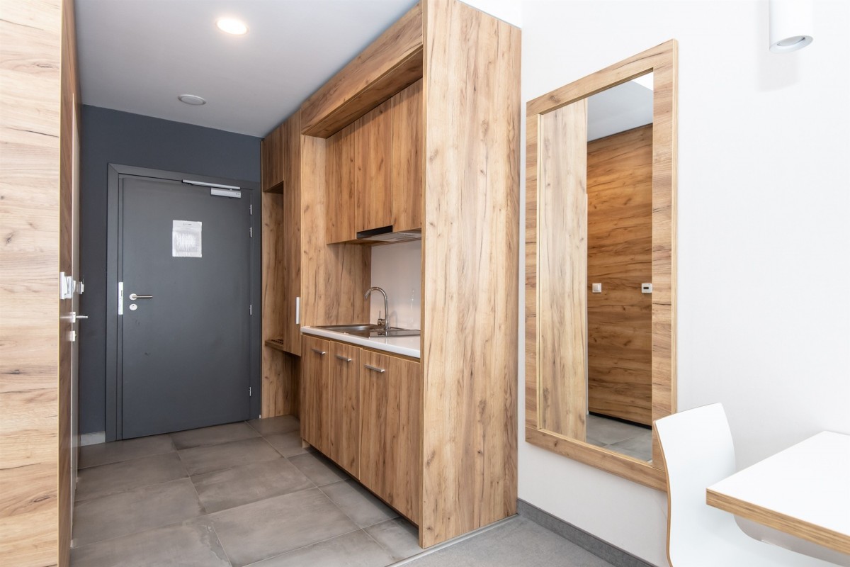 - lokal składa się z salonu z aneksem kuchennym, łazienki oraz przedpokoju