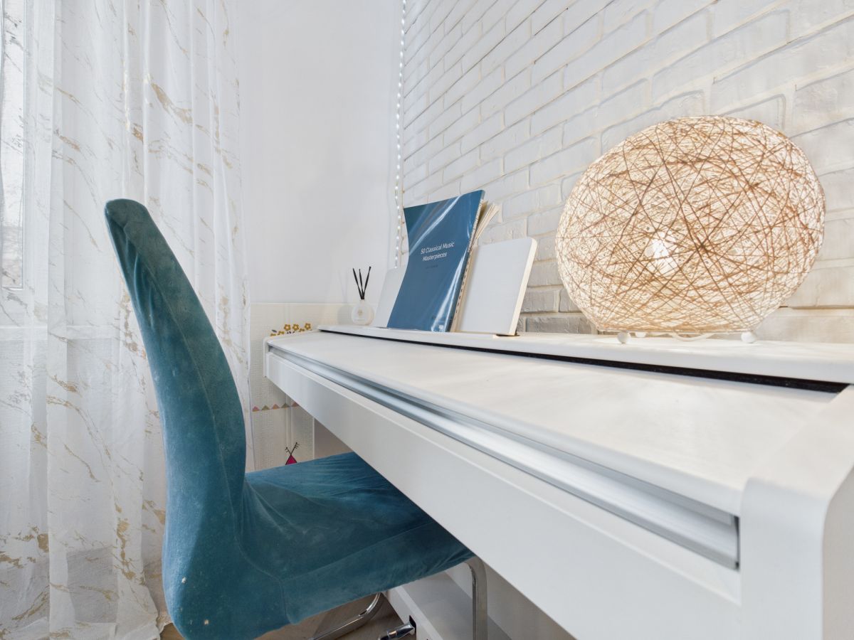 - jasnego salonu z ekspozycją zachodnią, wypełnionego naturalnym światłem w godzinach popołudniowych.