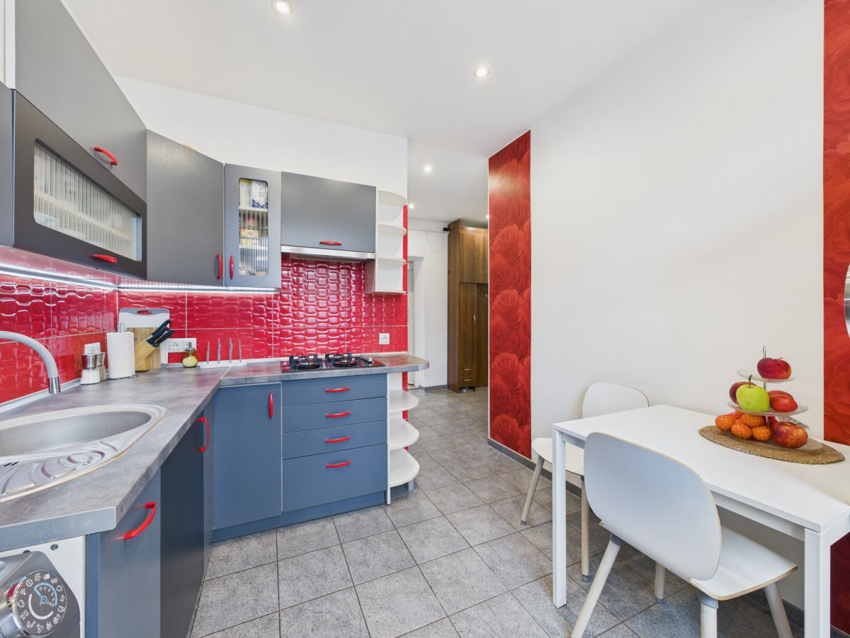 Oddzielna, duża kuchnia z oknem to doskonałe miejsce do gotowania i spożywania posiłków w domowej atmosferze.