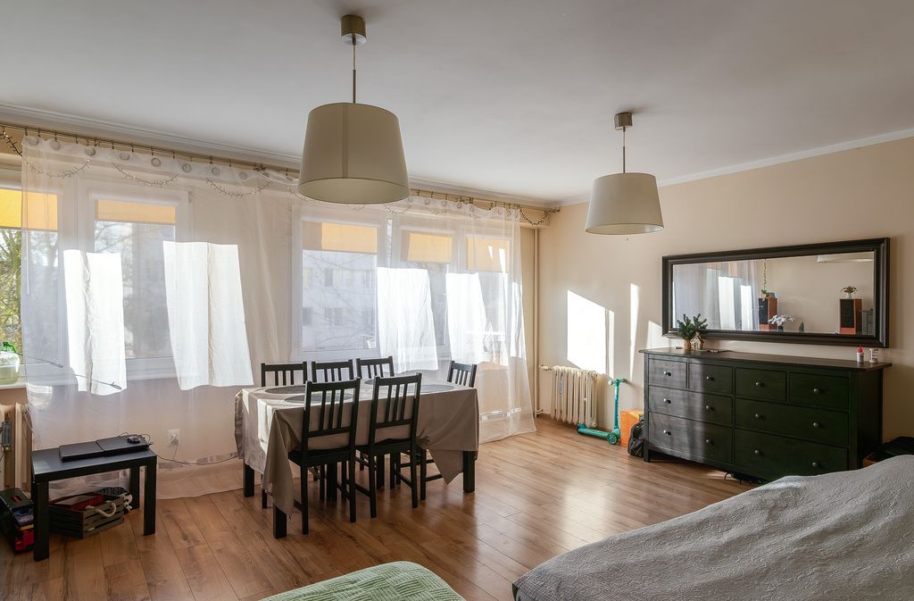 Mieszkanie o funkcjonalnym układzie, obecnie składające się z dwóch pokoi, z możliwością przywrócenia pierwotnego podziału na trzy niezależne pomieszczenia. Rozkład umożliwia elastyczną aranżację wnętrza w zależności od potrzeb przyszłego właściciela.