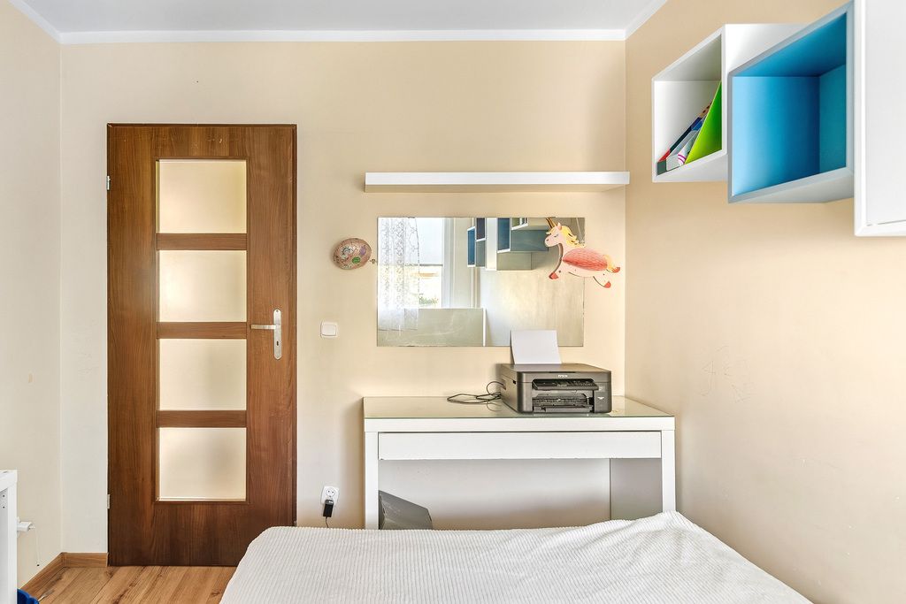 Sypialnia zapewnia wystarczającą przestrzeń na łóżko i szafę/komodę.