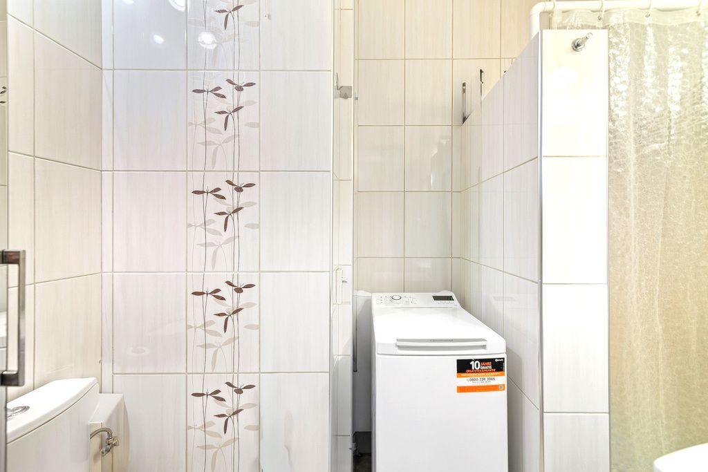 Łazienka w dobrym stanie technicznym z miejscem na podstawowe wyposażenie sanitarne.