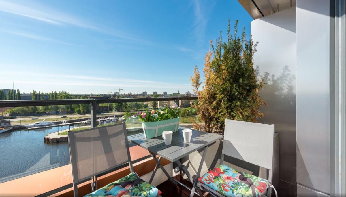 Apartament oferuje frontowy widok na rzekę Motława z bliskością Głównego Miasta Gdańsk. Duże przeszklenia salonu gwarantują widok na nasłoneczniony balkon z pięknym widokiem na rzekę.