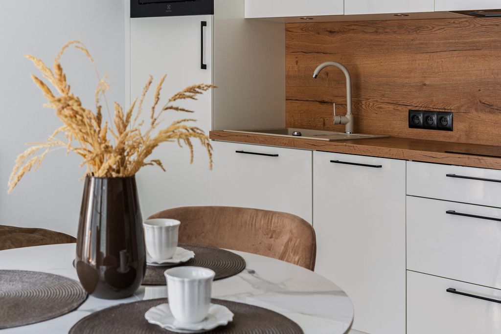 • W pełni wyposażony w meble zabudowane, ruchome oraz sprzęt AGD.