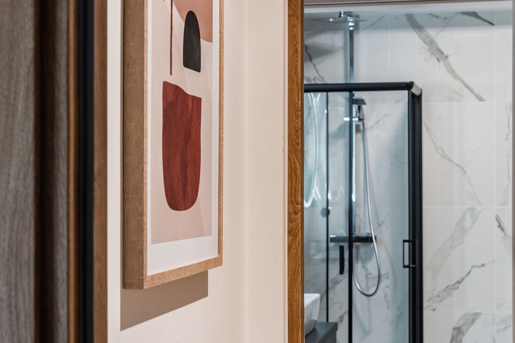 • W skład apartamentu wchodzi: część dzienna/sypialniana z aneksem kuchennym i wyjściem na taras oraz łazienka.