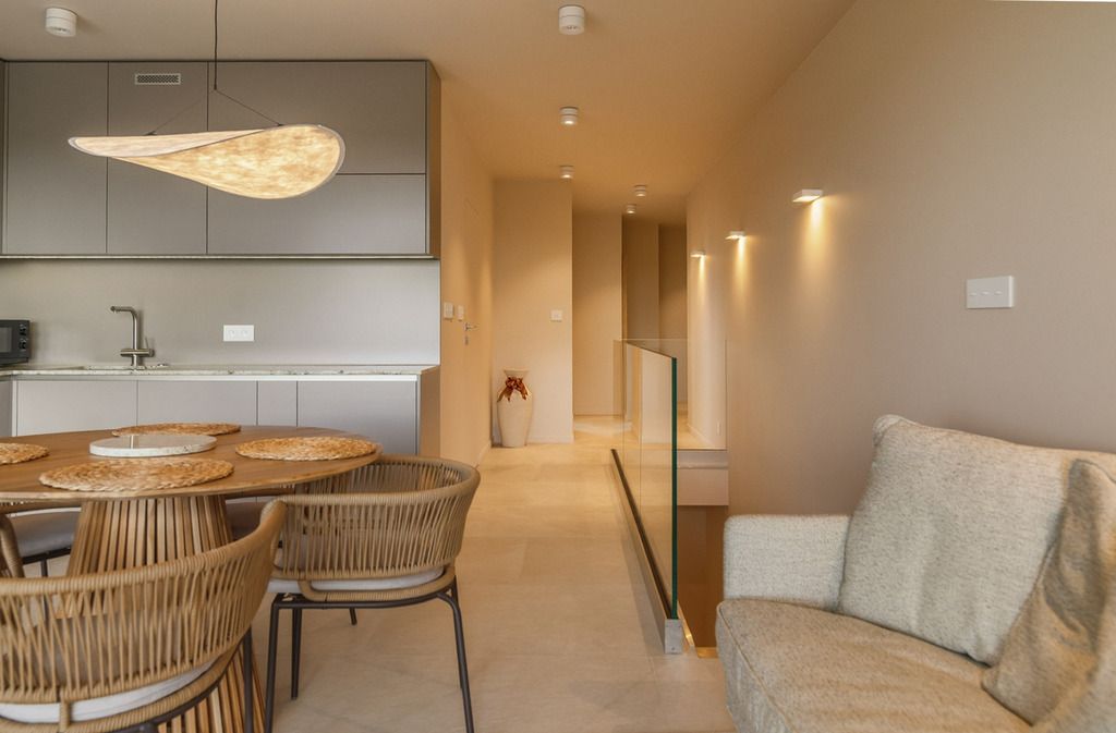 nowoczesny design połączenie drewna i bieli, szlachetne materiały, wysokiej jakości sprzęt, topowe oświetlenie. Udogodnienia: klimatyzacja, panoramiczne przesuwne drzwi balkonowe.