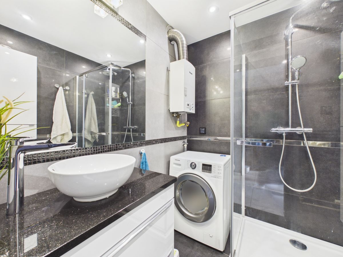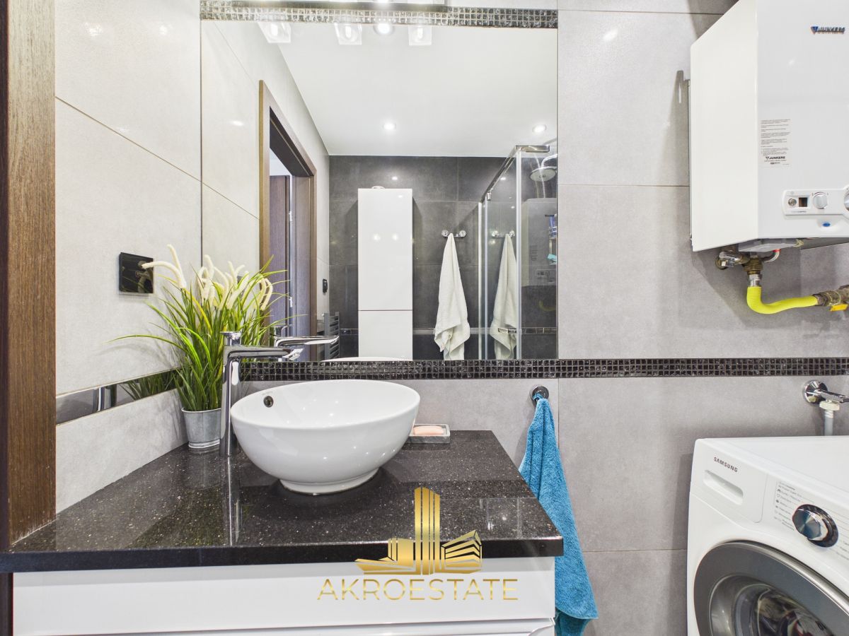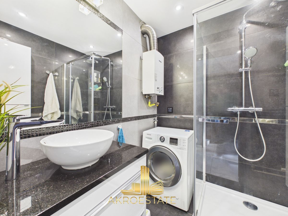 - łazienka z eleganckim blatem z granitu Star Galaxy (3 cm) oraz wygodnym prysznicem 80 × 100 cm,