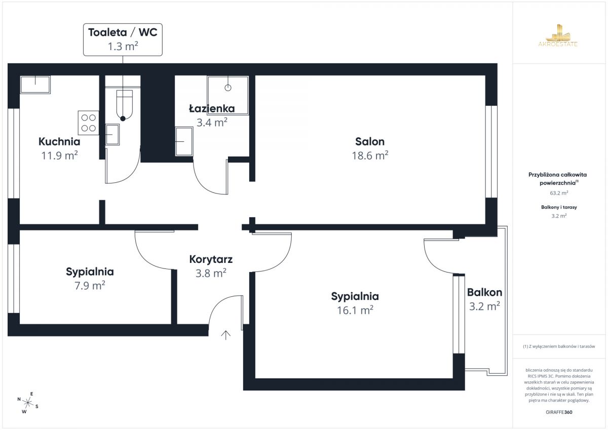 Lokal składa się z trzech niezależnych pokoi, oddzielnej kuchni z dużym oknem, łazienki, osobnej toalety oraz przestronnego korytarza. Dodatkowym atutem jest balkon od strony południowej oraz piwnica.