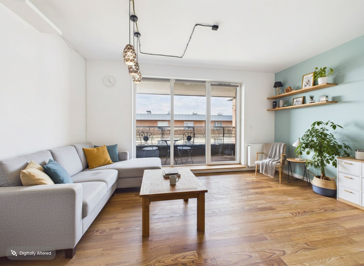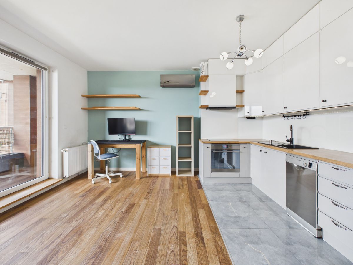 - Przestronny salon połączony z funkcjonalnym aneksem kuchennym,